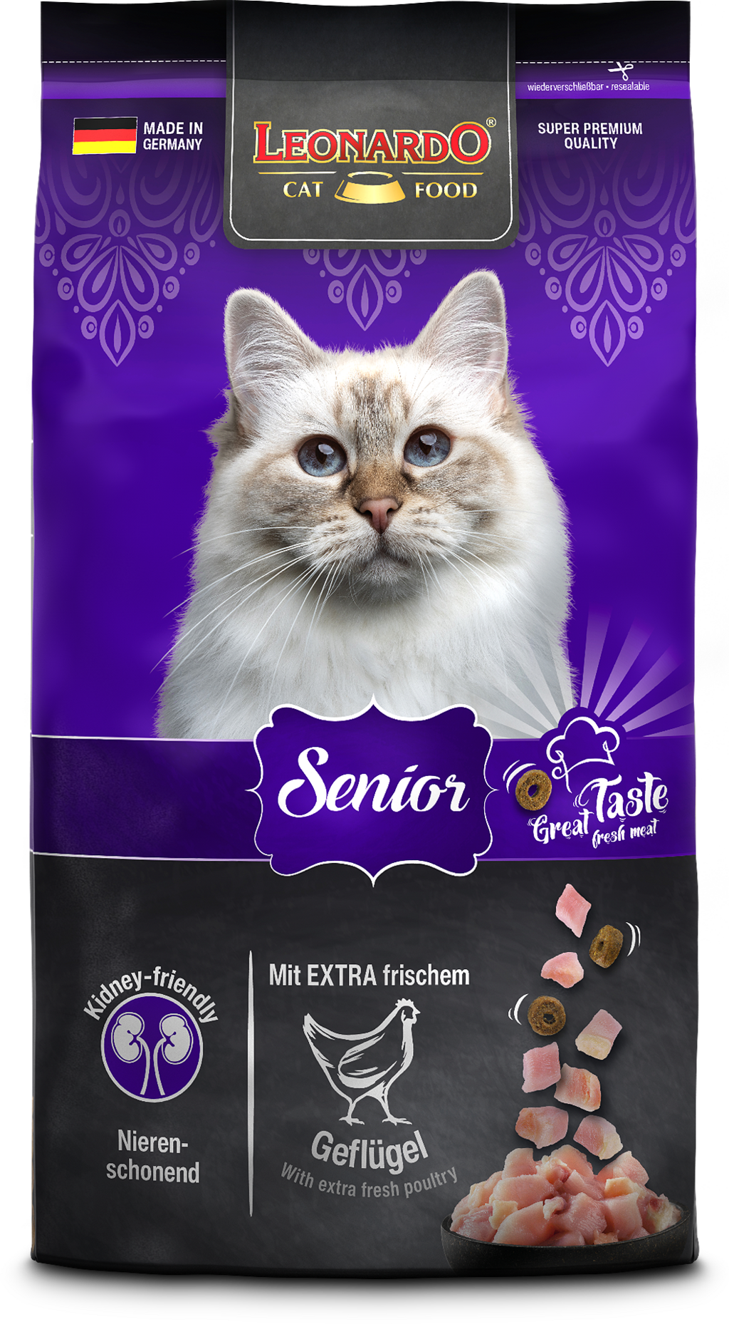 Ces croquettes Senior s'adressent aux chats de plus de 10 ans. Cet aliment savoureux contient beaucoup de volaille et sont enrichies de krill, de chia et de farine de pépins de raisin pressée à froid.