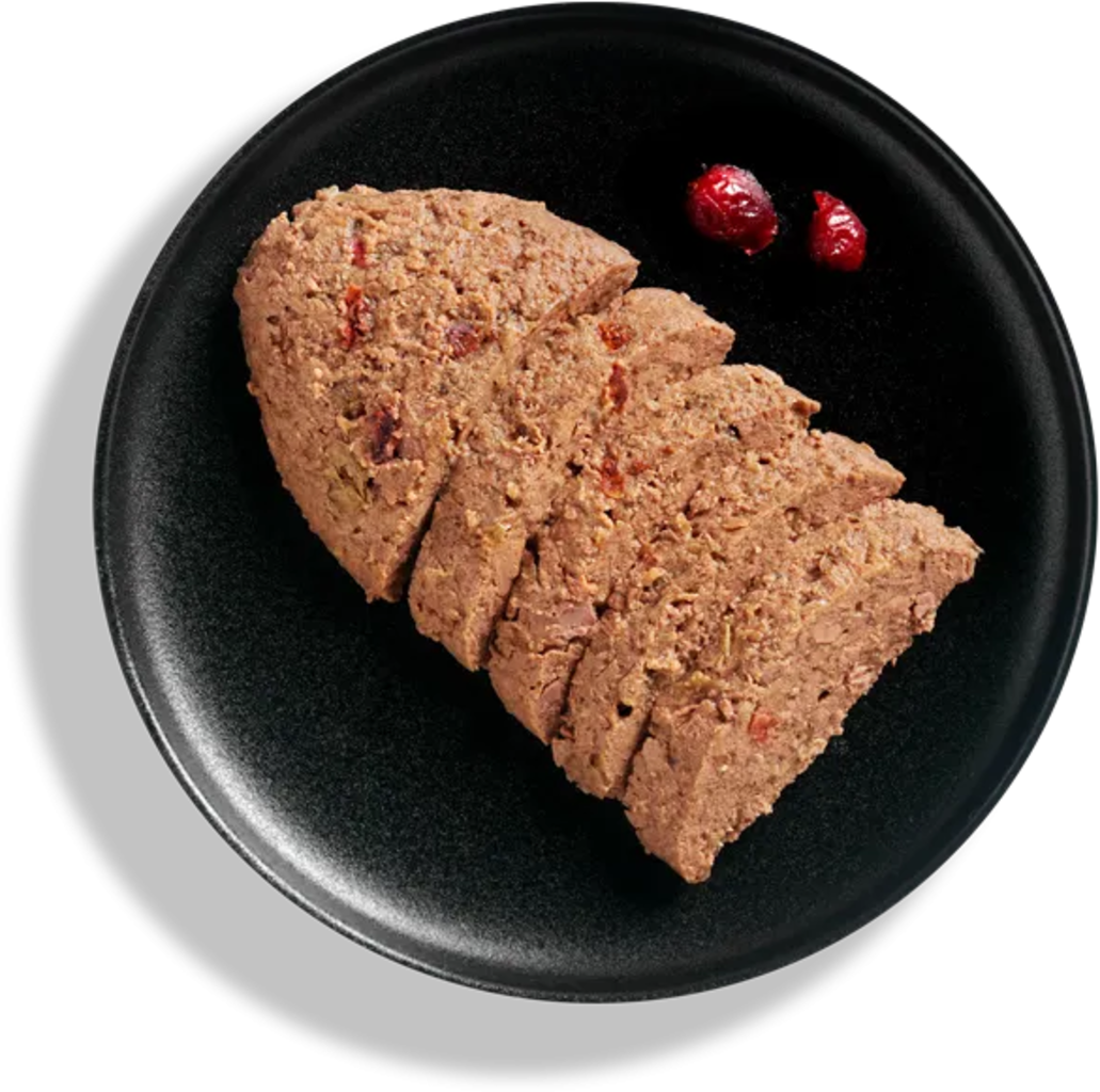 30 % Kaninchenfleisch/-herz/-leber/-lunge/-niere, 30 % Hühnerfleisch/-leber/-herz, 28,3 % Fleischbrühe von Kaninchen/Huhn/Rind, 6,5 % poumon de boeuf, 4 % canneberges, 0,5 % coquilles d'œufs séchées, 0,5 % Mineralstoffe, 0,2 % huile de saumon