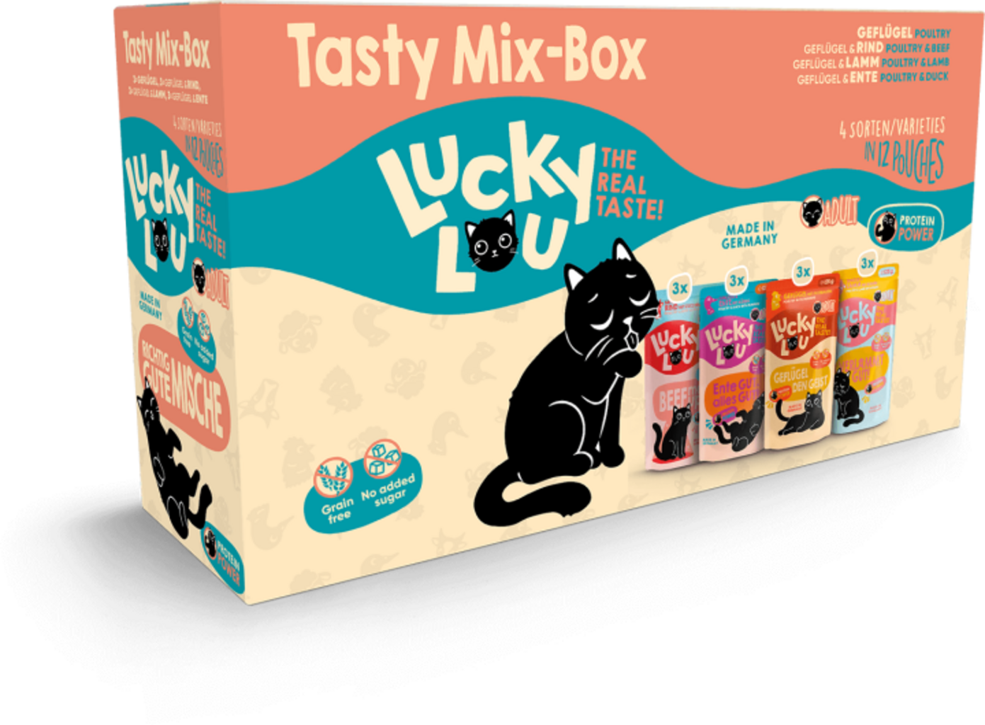 avis en français à propos du produit Lucky Lou Aliment Humide Lifestage Adult Mélange Savoureux