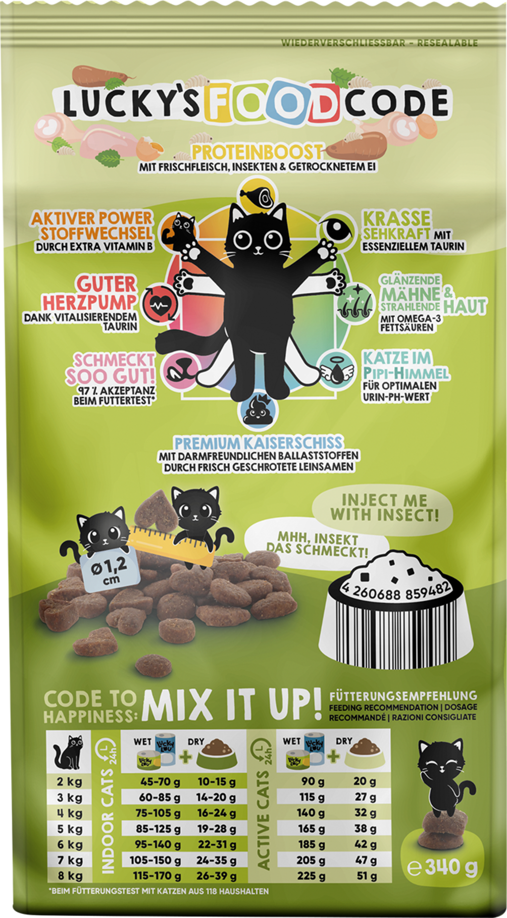 Lucky Lou Croquettes Food Code Adult Volaille & Insectes, 340 g