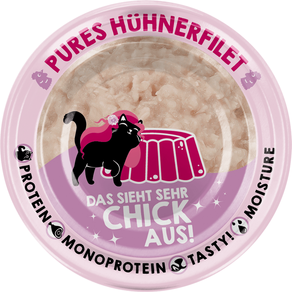 60,5 % Hühnersud, 38 % Hühnerfilet, 1,5 % amidon de tapioca