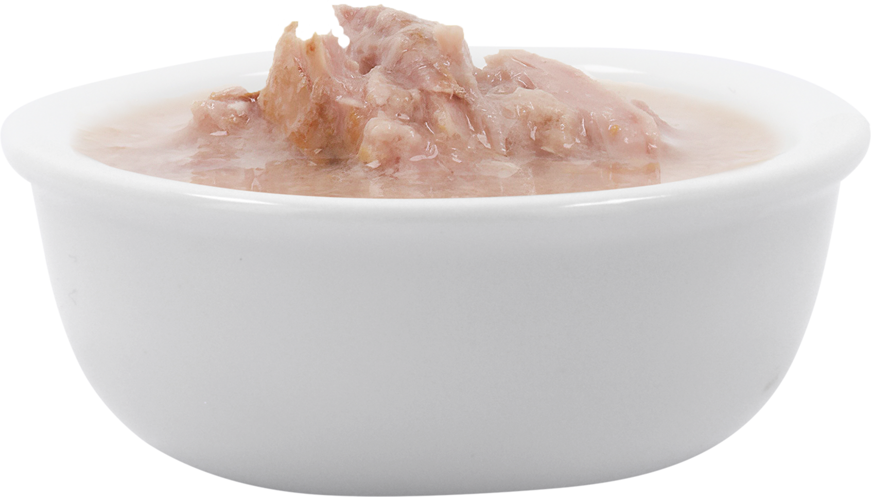 56,5 % bouillon de thon et de saumon, 38 % filets de thon, 4 % poisson, 1,5 % amidon de tapioca
