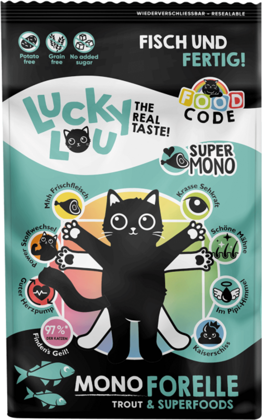 avis en français à propos du produit Lucky Lou Food Code Mono Forelle