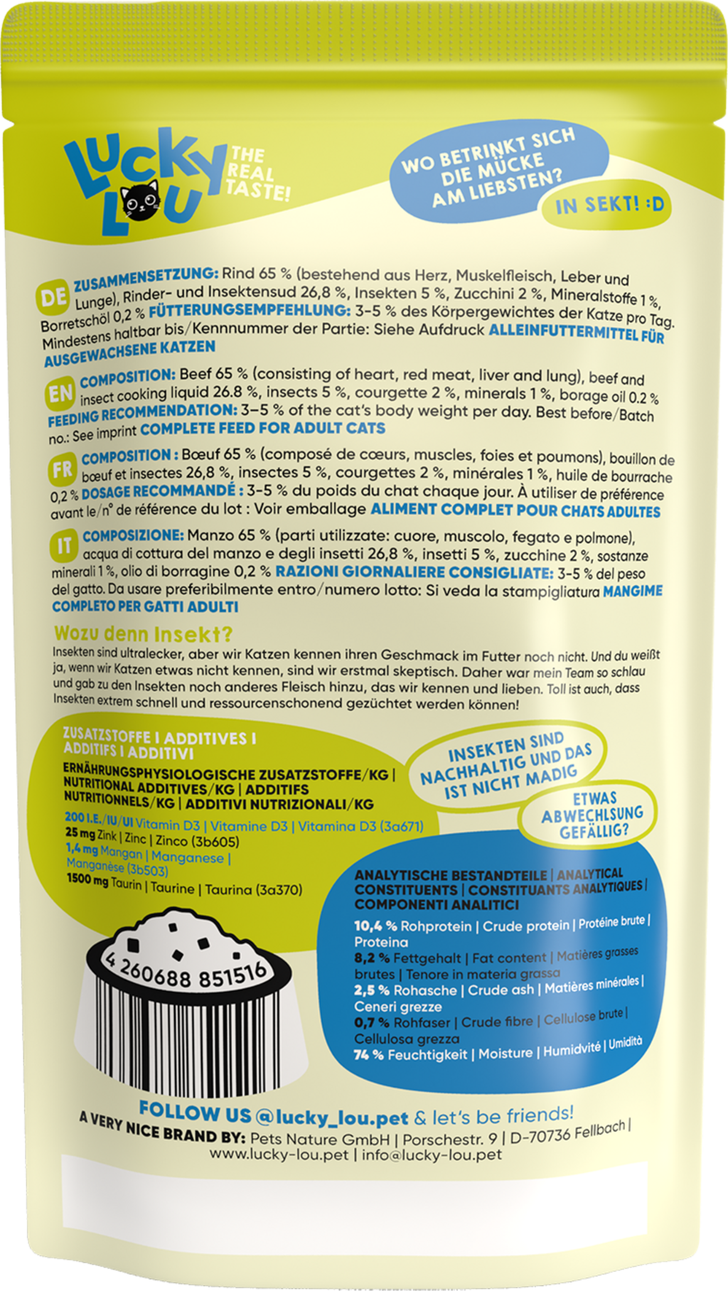 avis en français à propos du produit Lucky Lou Lifestage Pouch Adult Bœuf & Insectes