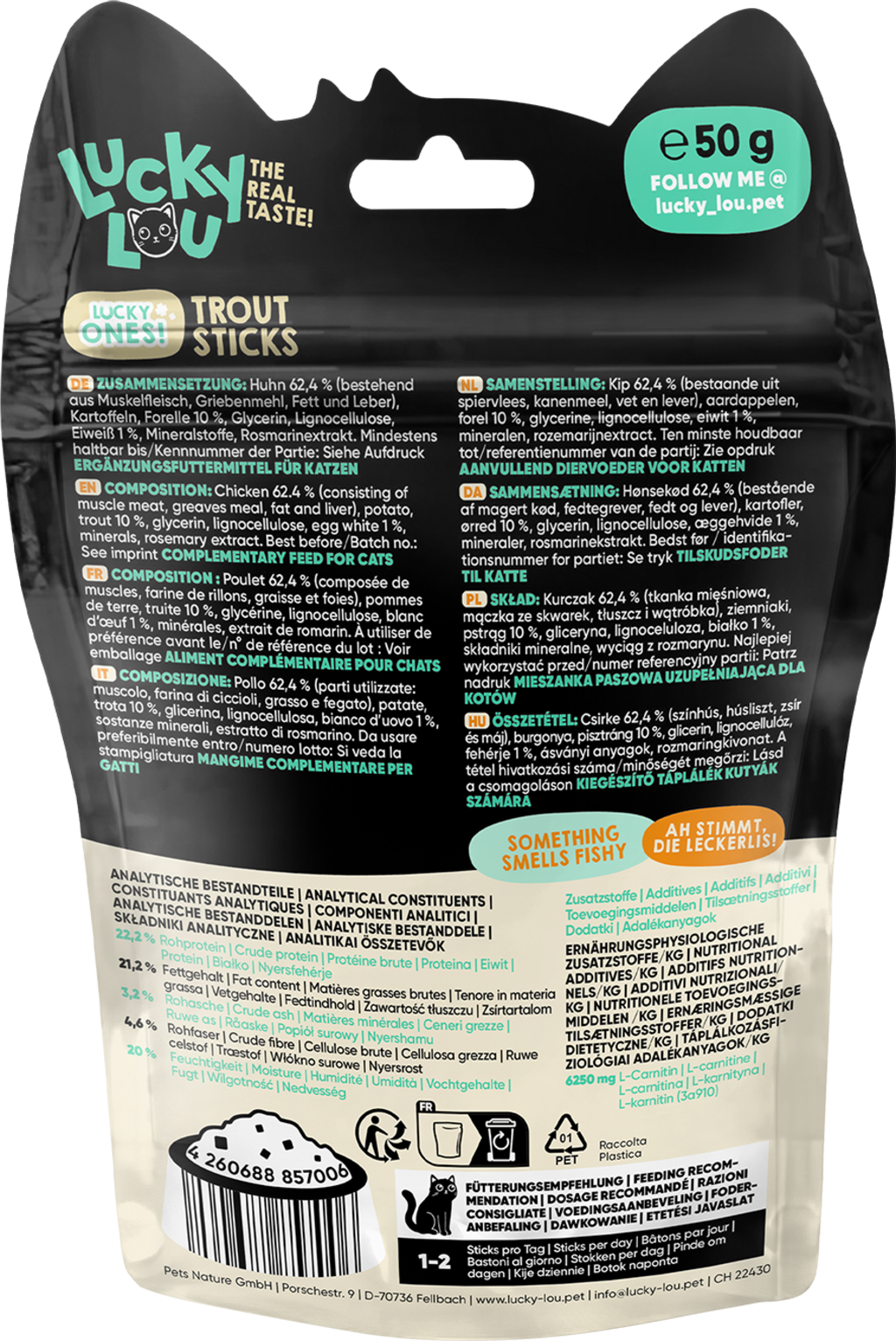 Lucky Lou Sticks Lucky Ones Poulet & Truite, 50 g