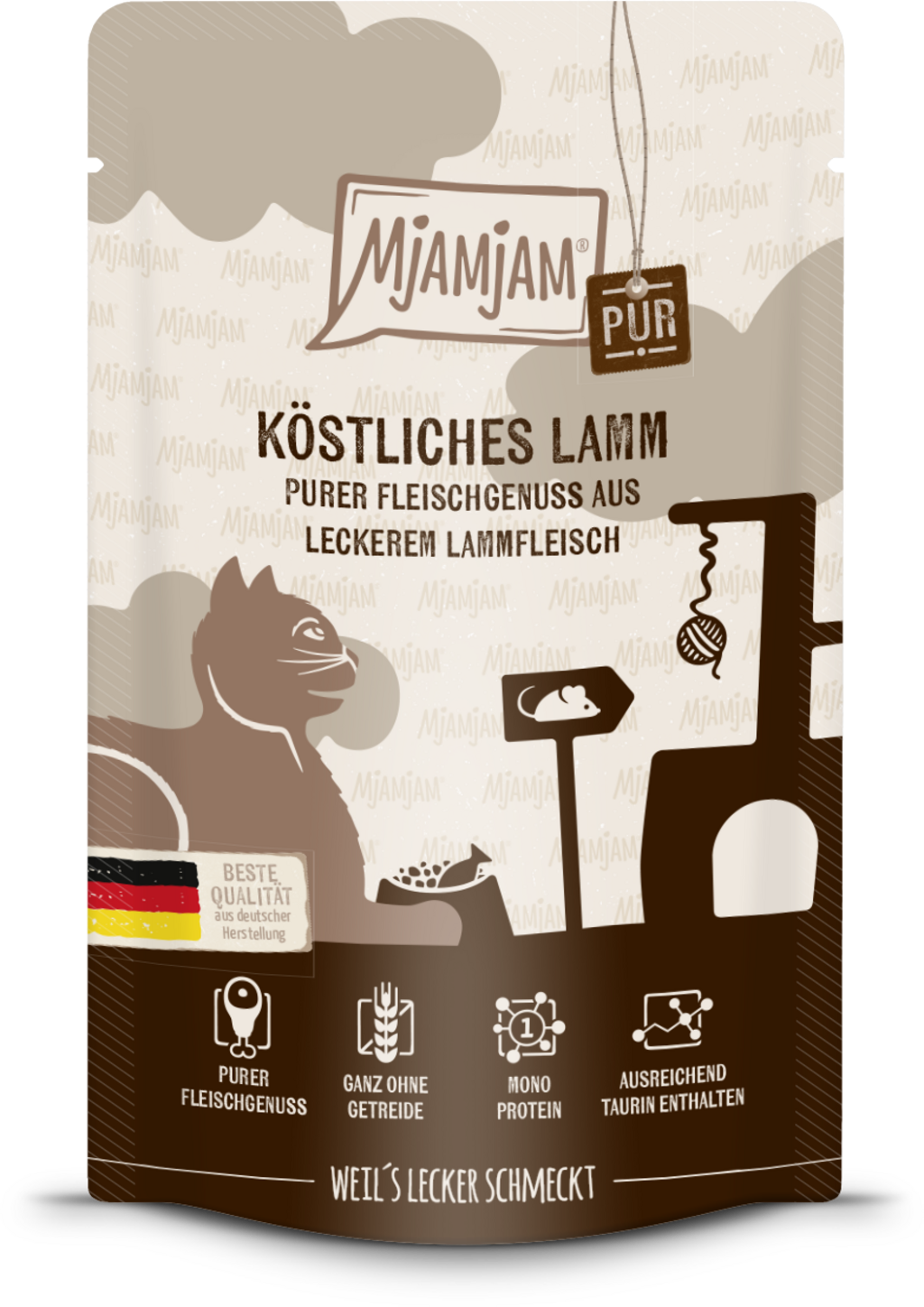 Les sachets de Mjamjam gâtent votre chat avec une saveur riche, une qualité incomparable et une touche d’amour. L’agneau comme source unique de protéines ravira les papilles de votre compagnon et lui offrira un repas adapté à son espèce. De plus, la taurine est également essentielle pour les chats.