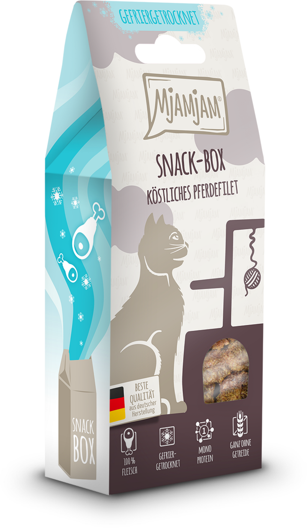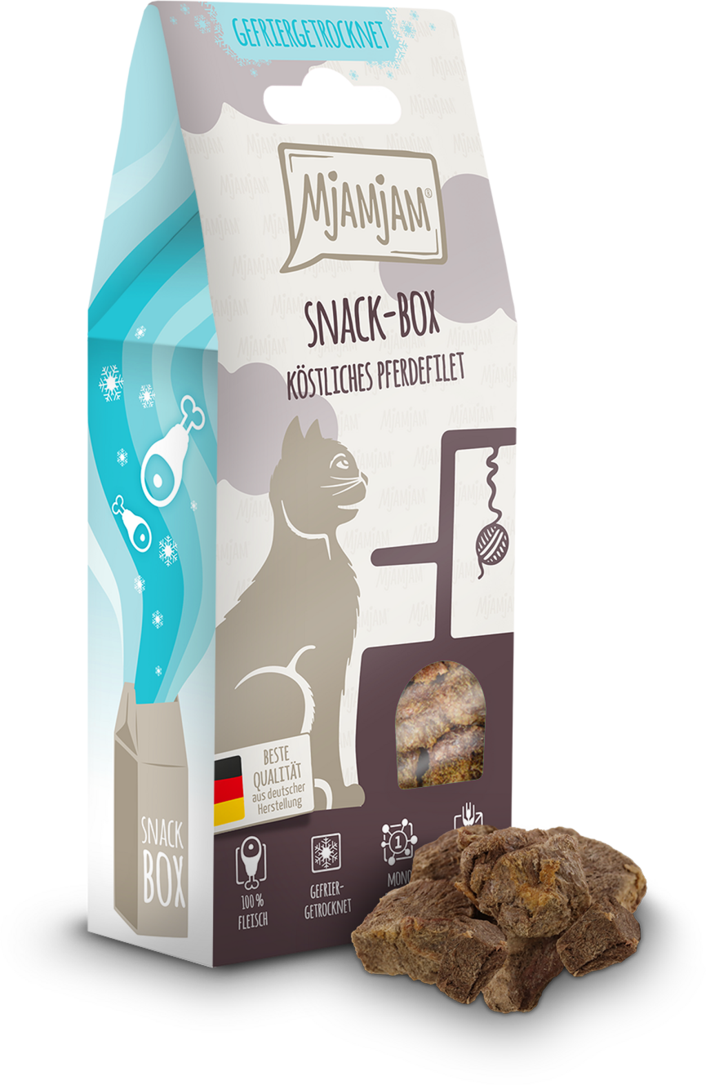 Les friandises de la Snack Box de Mjamjam sont la récompense parfaite pour faire plaisir à votre chat. Préparée avec de délicieux filets de cheval délicatement lyophilisés, cette snack box propose un produit naturel que votre compagnon félin va adorer.