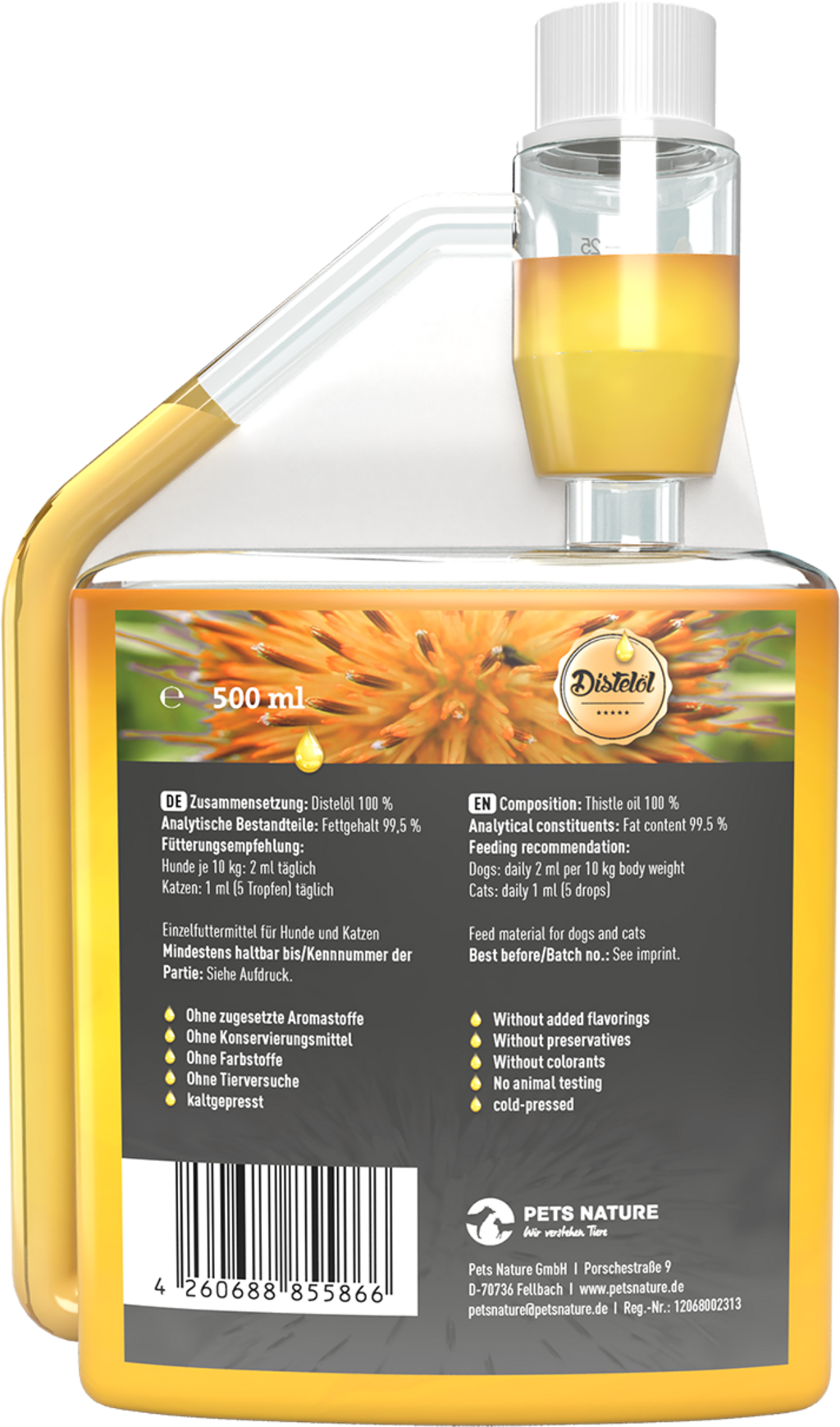 Pets Nature Huile de Carthame, 500 ml