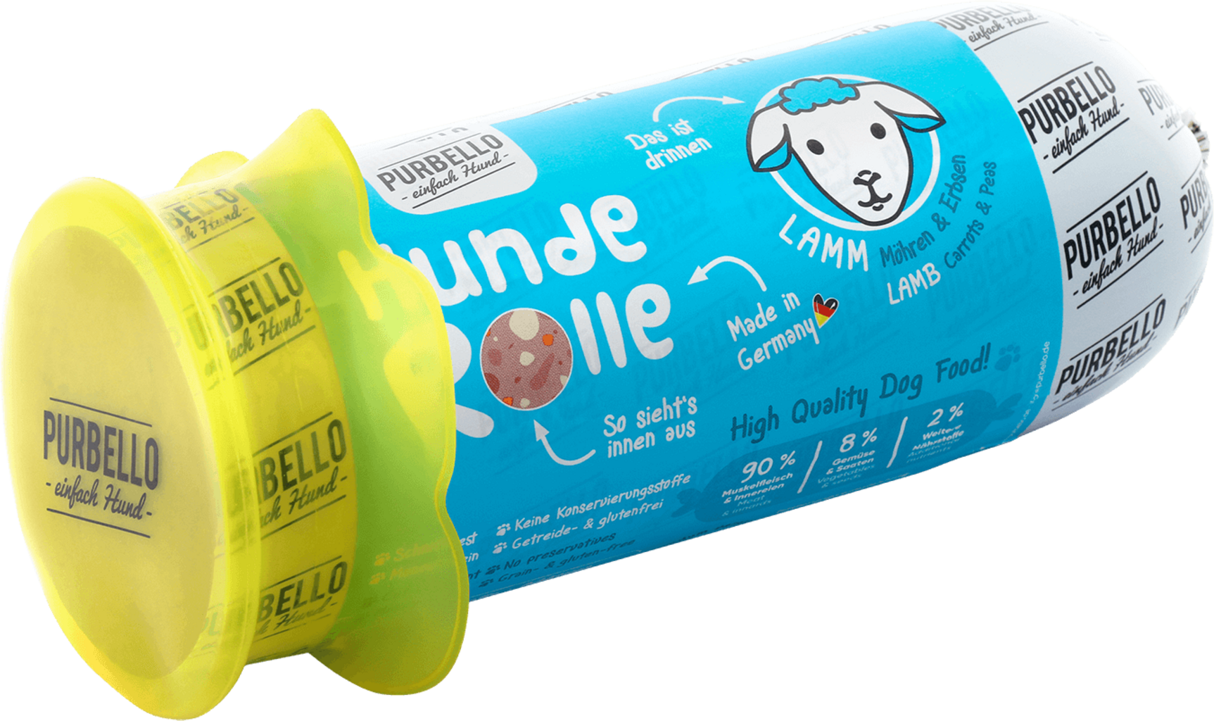 Grâce au Fresh Cap, la saucisse pour chien de Purbello reste fraîche et aromatique plus longtemps, car ce couvercle s’adapte parfaitement à la surface de coupe de la saucisse et la recouvre de manière hermétique. Pour une saveur toujours fraîche.