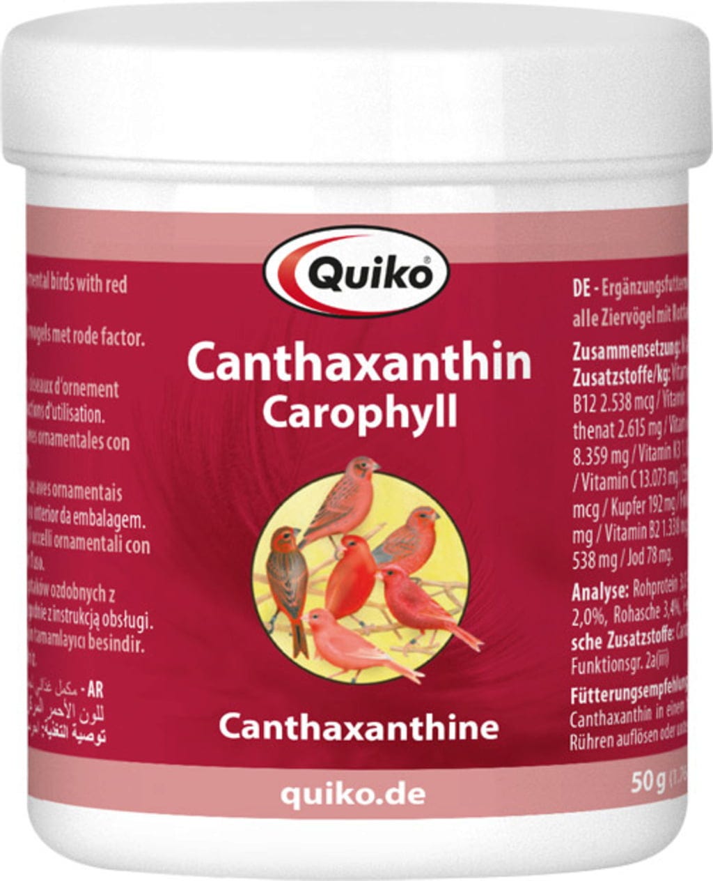 Quiko Canthaxanthine/Carophyll – Aliment Complémentaire pour Oiseaux à Facteur Rouge, 50 g