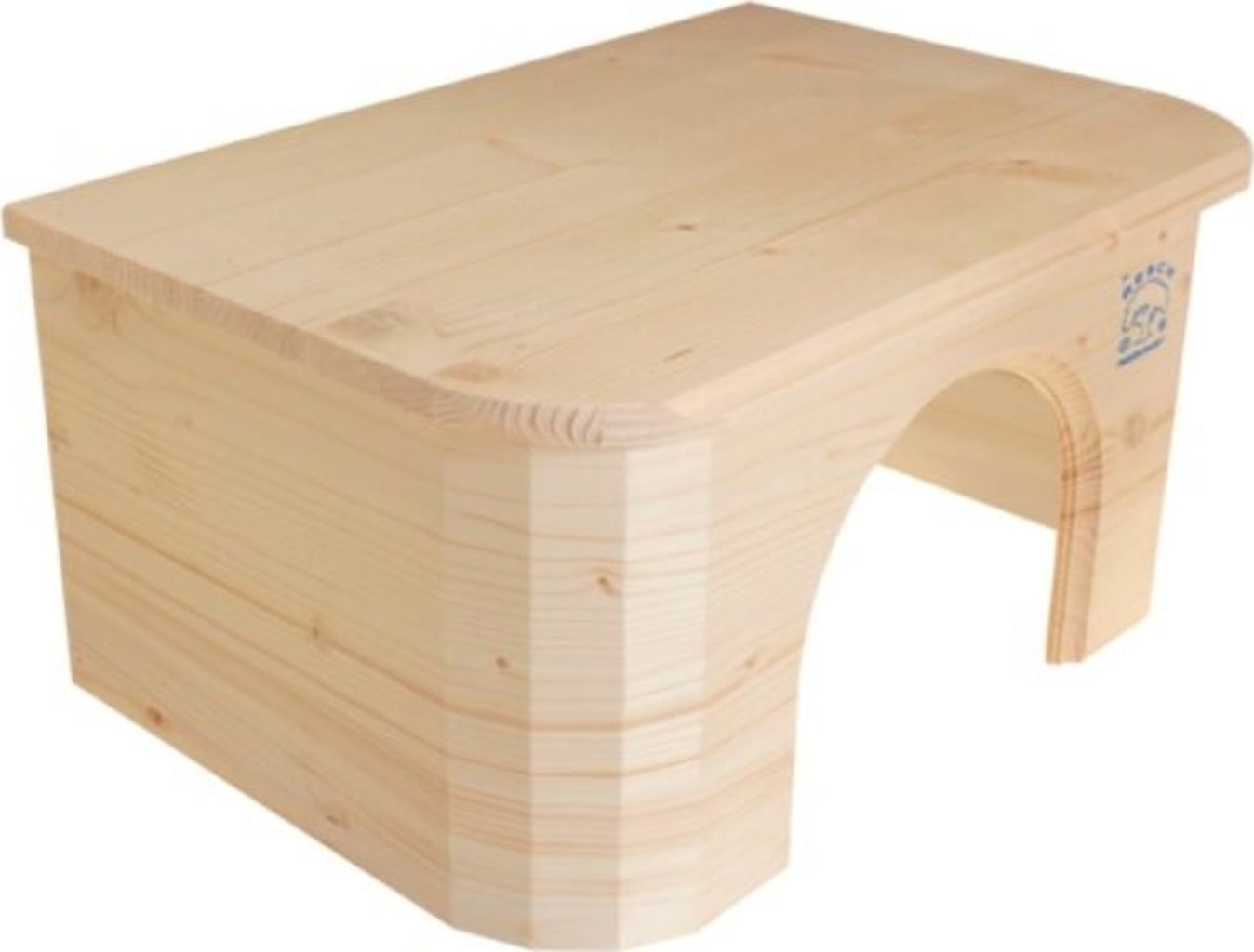 Parfait pour y installer son petit nid. Grâce à sa fabrication artisanale, ce bungalow constitue un équipement de base de qualité pour les rongeurs. Cette maisonnette confortable est composée à 100 % de bois massif d'épicéa laissé à l'état naturel. Elle offre beaucoup de place pour se retirer et se reposer. Les bords arrondis et l'ouverture soigneusement façonnée donnent une touche particulièrement charmante.