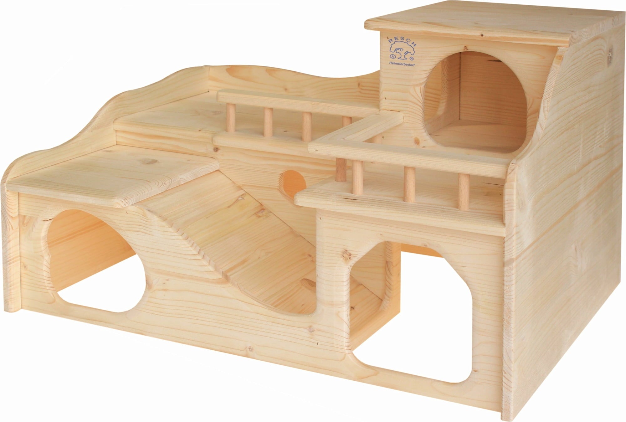RESCH est une entreprise artisanale autrichienne qui s'est spécialisée dans la fabrication de maisonnettes robustes pour rongeurs de différentes tailles. Tous les modèles ont en commun le choix des matériaux : du bois d'épicéa massif non traité, de la colle inoffensive et des clous minuscules (utilisés avec parcimonie et travaillés avec soin) garantissent le bonheur des rongeurs sans aucun risque.