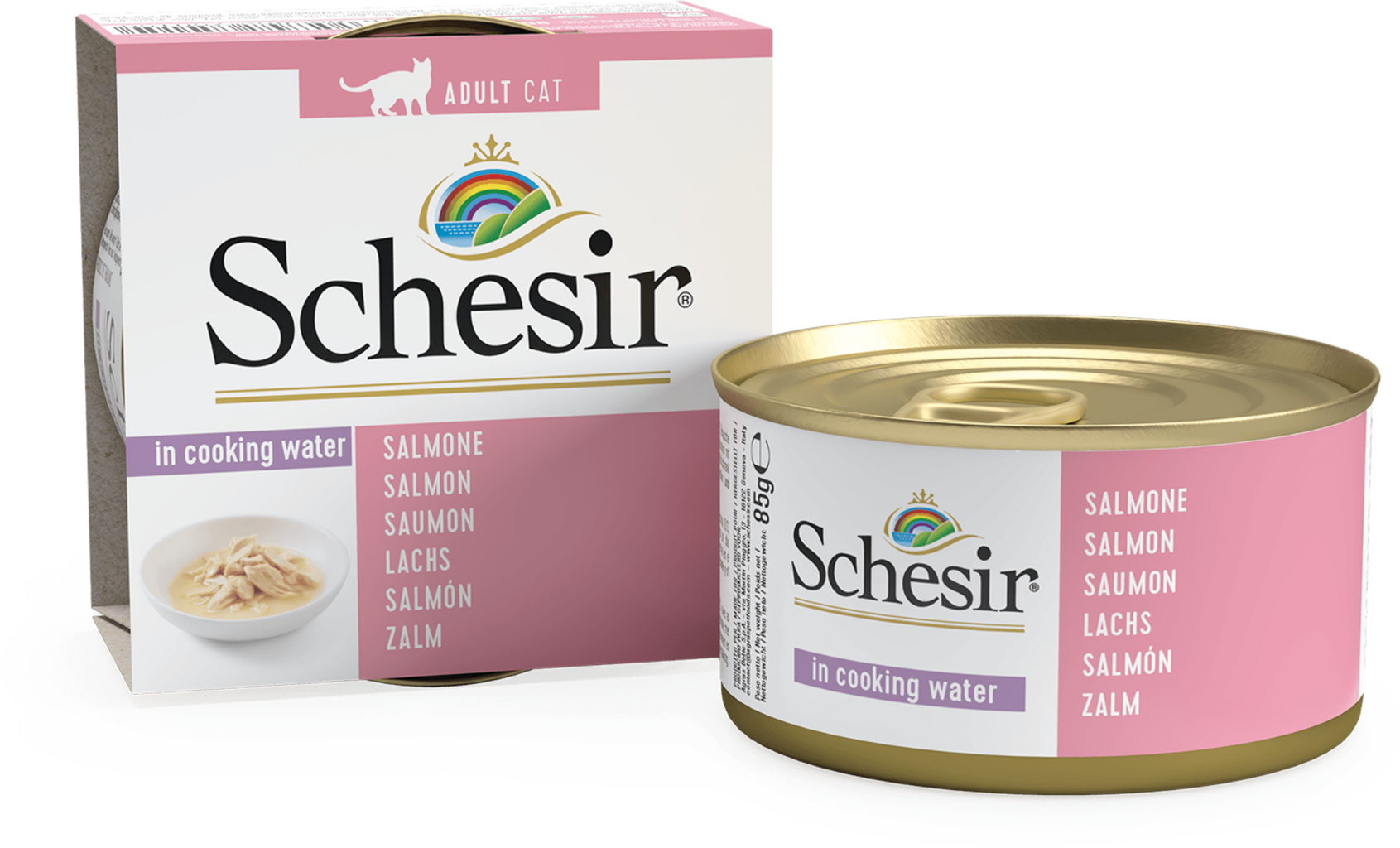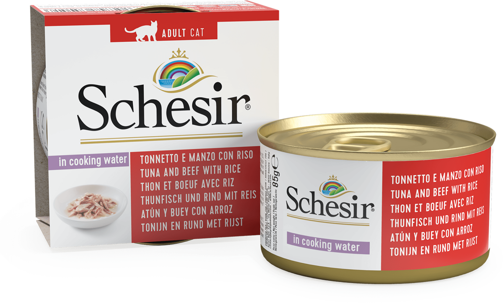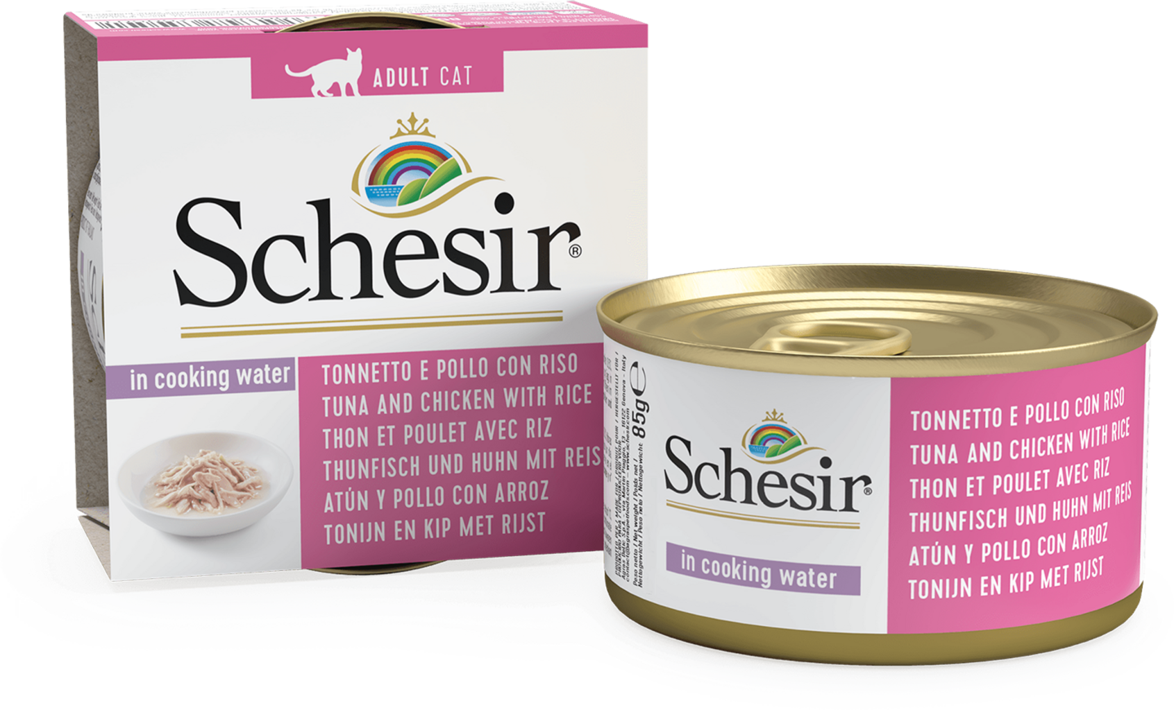 Ces boîtes de nourriture humide Schesir sont préparées avec soin, avec des ingrédients 100 % naturels, qui trempent dans leur propre eau de cuisson. Les recette sont à base de :