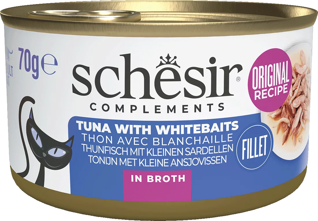 Schesir Nourriture Humide avec Bouillon, Thon et blanchailles (70 g)