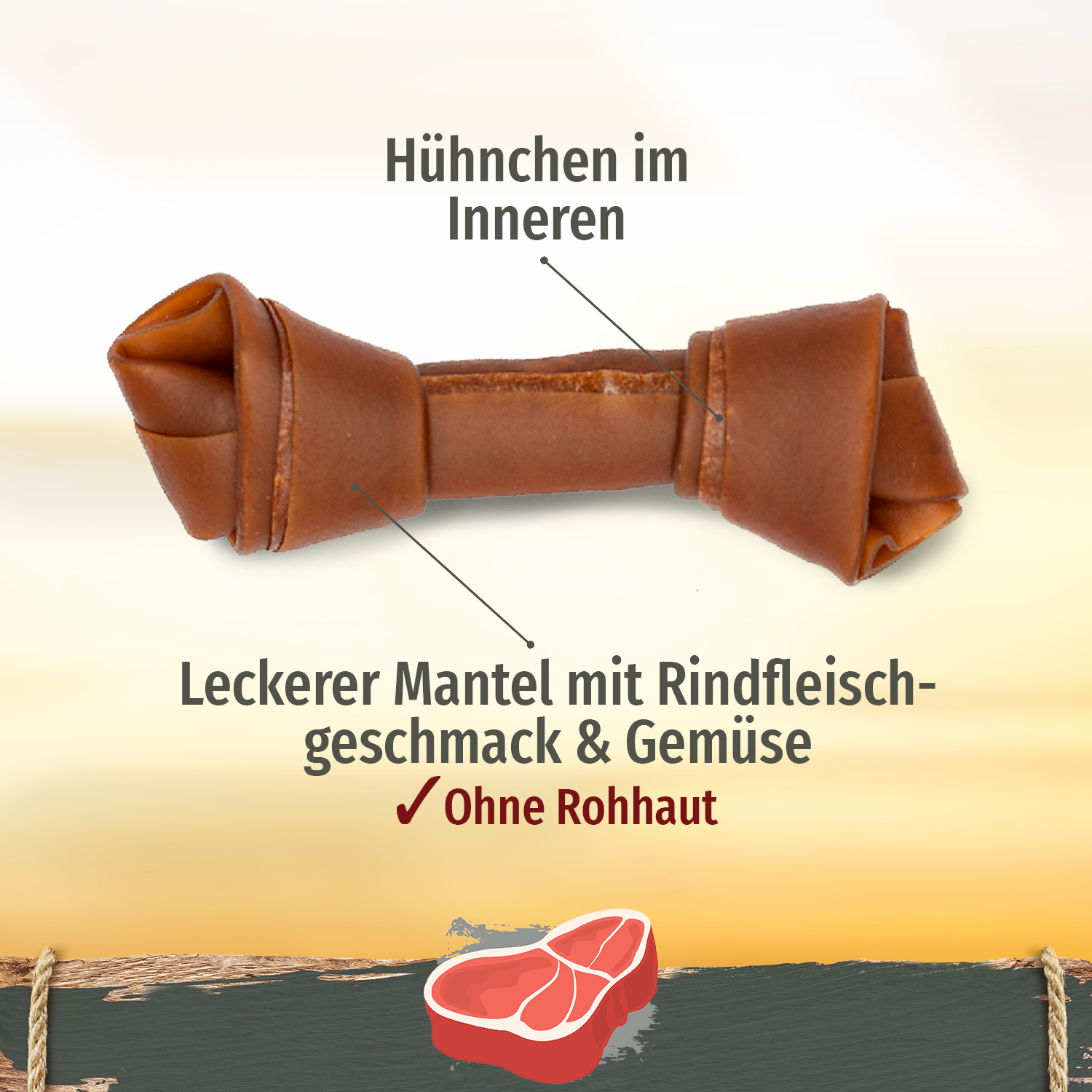 Remarque : La taille de l'os à mâcher est parfaitement adaptée aux chiens de taille moyenne. Ne laissez pas votre chien sans surveillance pour autant lorsqu'il mâche son os.