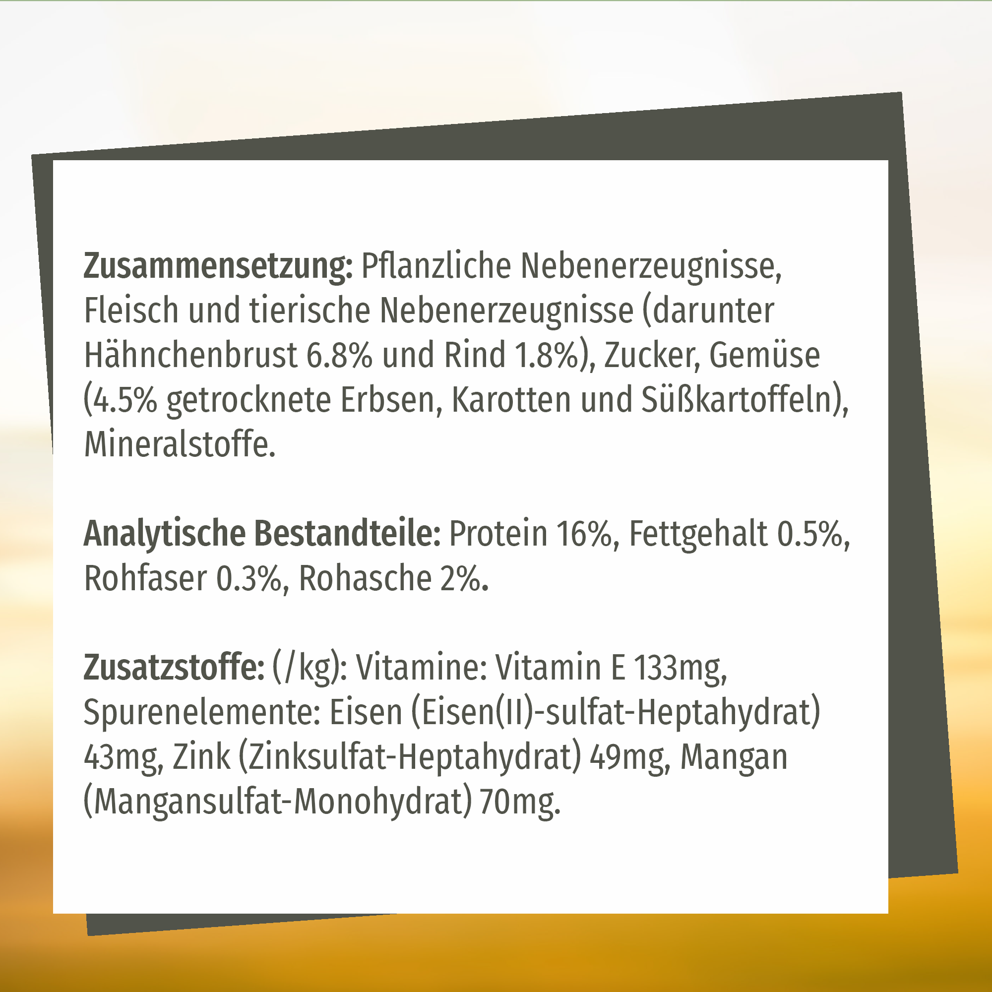 | Déclaration d'aliments pour animaux: | Complément alimentaire |