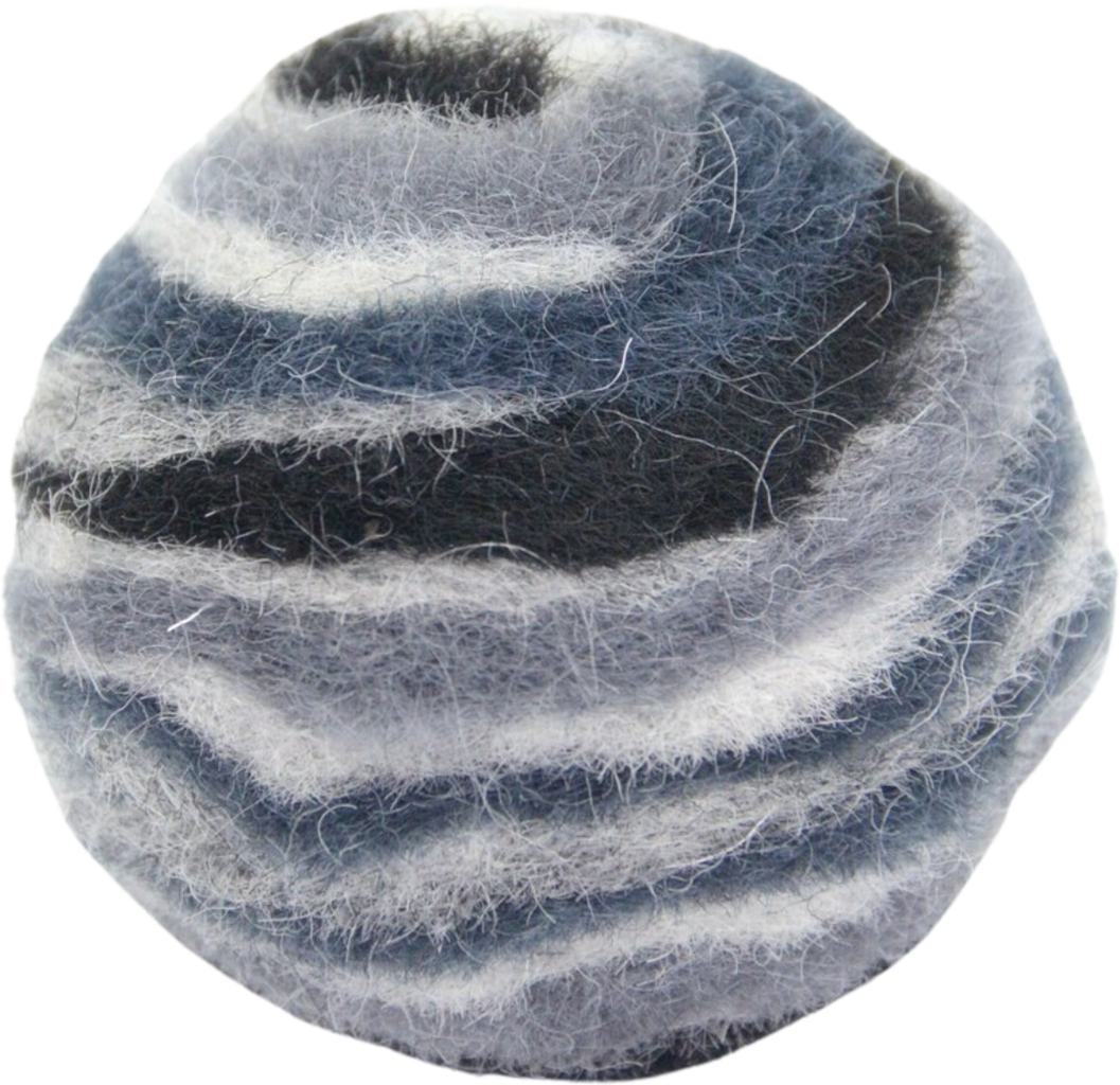Avec cette balle en feutre vive et amusante, offrez un nouvel élan aux moments de jeu de votre compagnon félin. Grâce à sa forme légèrement irrégulière, elle ne roule jamais de manière prévisible et incite votre chat à réagir avec vivacité. Idéale pour les petits chasseurs et les chatons curieux. Qu’il s’agisse de poursuites effrénées ou de pauses ludiques plus tranquilles, la bonne humeur est au rendez-vous. Et si l’aventure devient un peu trop mouvementée, la balle peut être lavée en cycle laine à 30 °C, afin d’être rapidement prête pour de nouvelles parties. Chaque pièce est unique, fabriquée à la main avec soin en Allemagne.