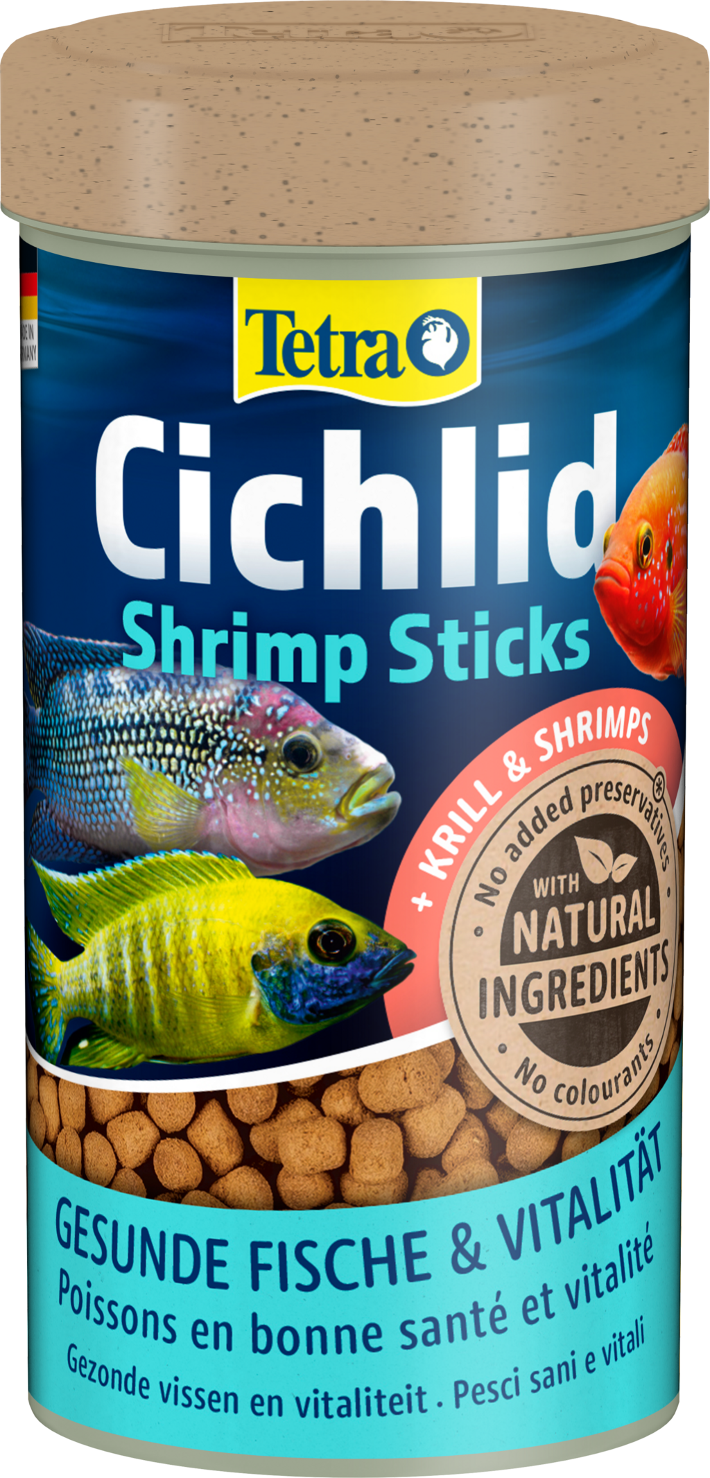 Tetra CichlidShrimp Sticks est un aliment principal de qualité supérieure sous forme de bâtonnets, spécialement conçu pour les cichlidés carnivores en aquariums d'eau douce.