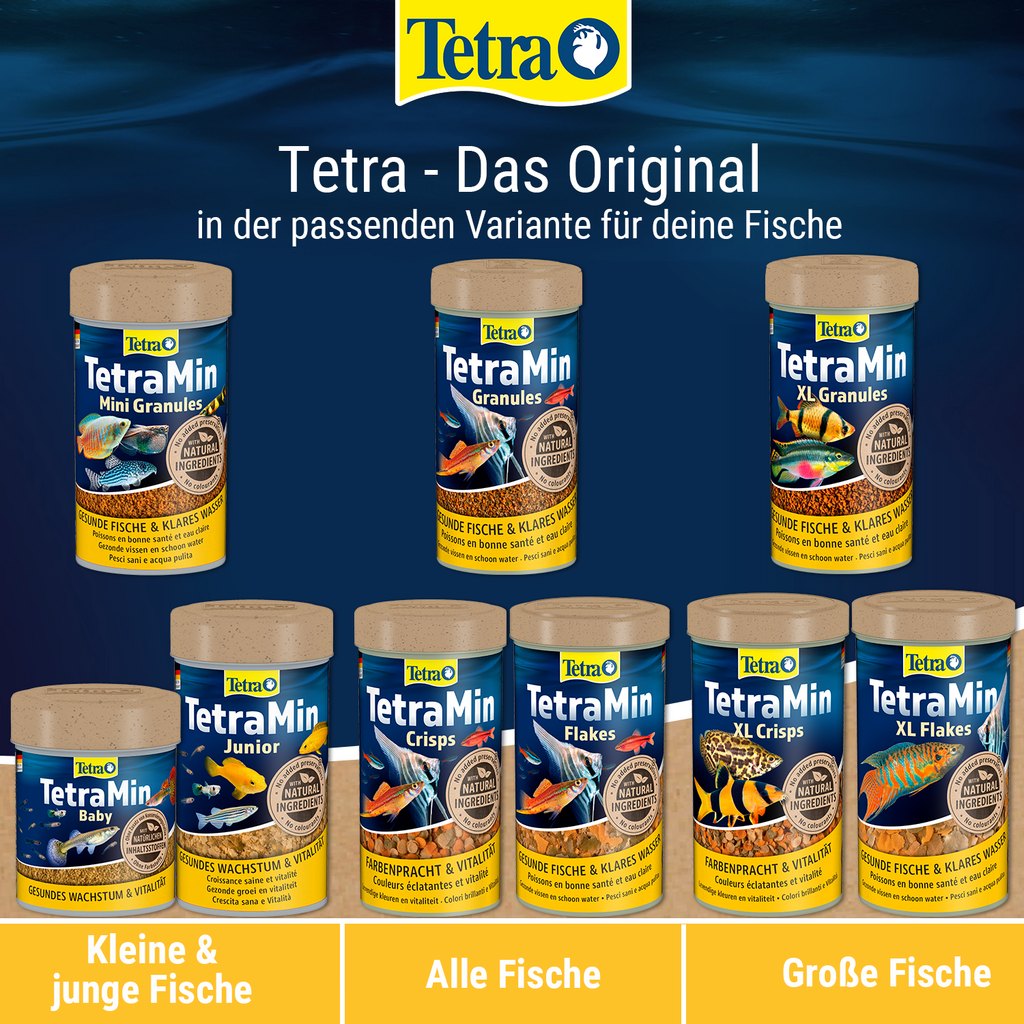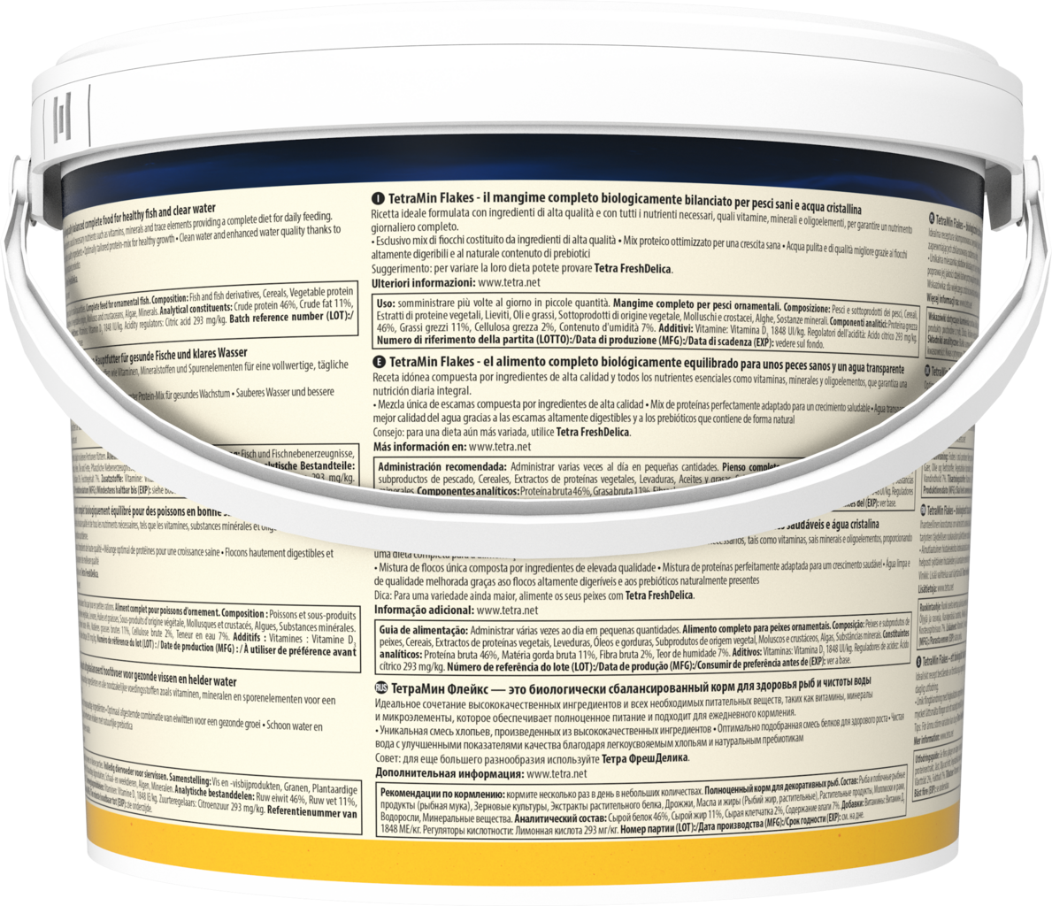 - Distribuez TetraMin Flakes plusieurs fois par jour en petites quantités, de manière à ce que les poissons consomment tout en quelques minutes. Ce produit peut être complété avec l'aliment Tetra Delica pour une alimentation variée.
