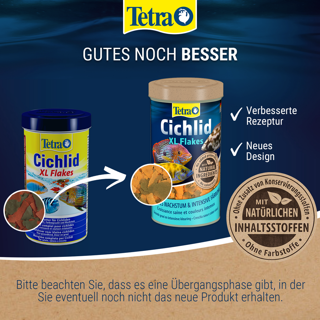 - Tetra Cichlid XL Flakes peut être administré plusieurs fois par jour en petites portions que les poissons peuvent consommer en quelques minutes.