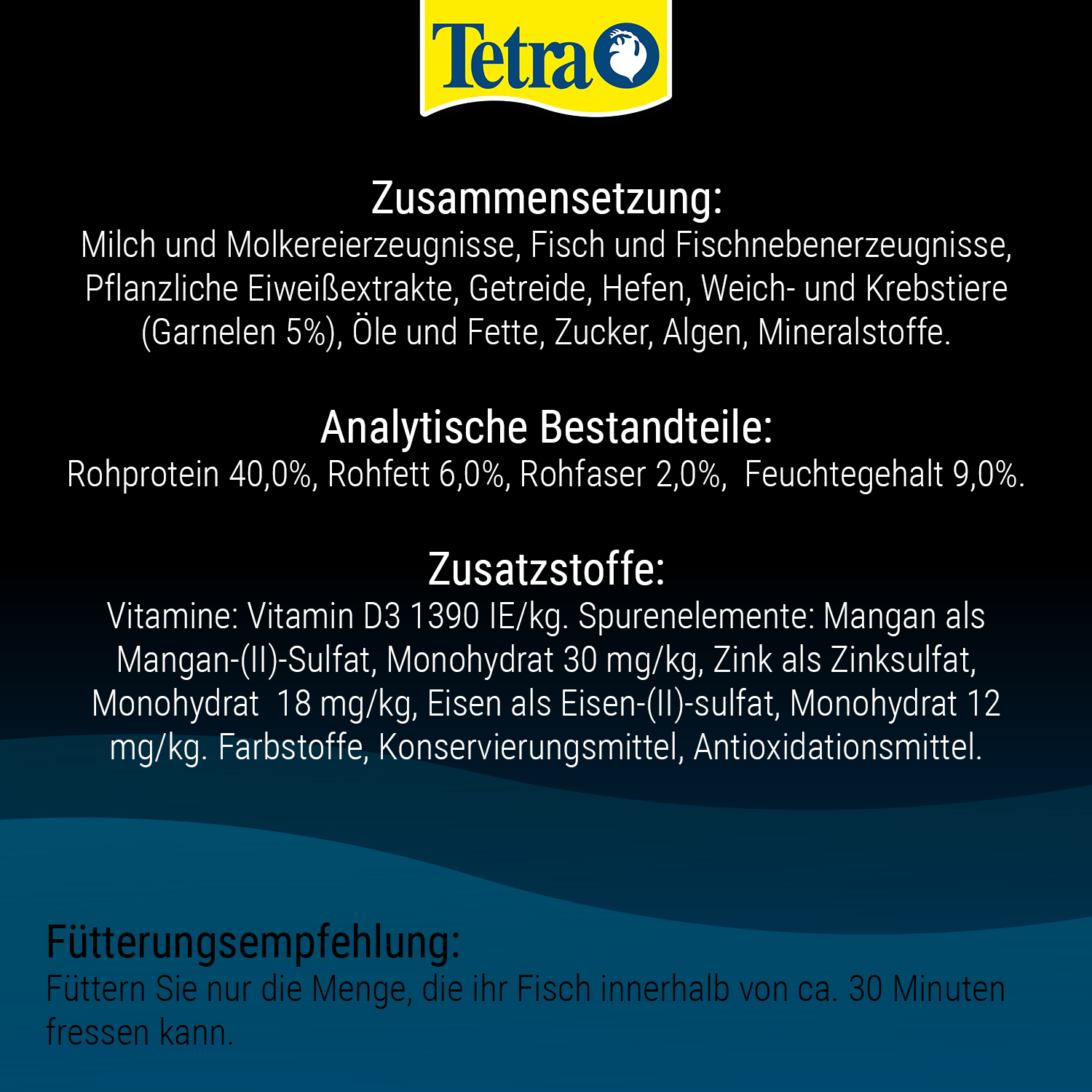 TabiMin de Tetra est un aliment en pastilles de qualité supérieure, biologiquement équilibré et riche en nutriments pour tous les poissons de fond. Les pastilles coulent rapidement, sont faciles à placer dans des endroits cachés pour les poissons timides et se dissolvent lentement pour une consommation facile sans se décomposer ni troubler l'eau. La nouvelle formule multi-comprimés contient des crevettes pour une meilleure acceptation ainsi que tous les nutriments, vitamines et minéraux essentiels. Les algues avec de nombreux minéraux naturels et caroténoïdes contribuent à l'intensification naturelle de la couleur. Les aliments Tetra sont faciles à digérer, de sorte que l'eau est moins polluée et reste propre et claire.