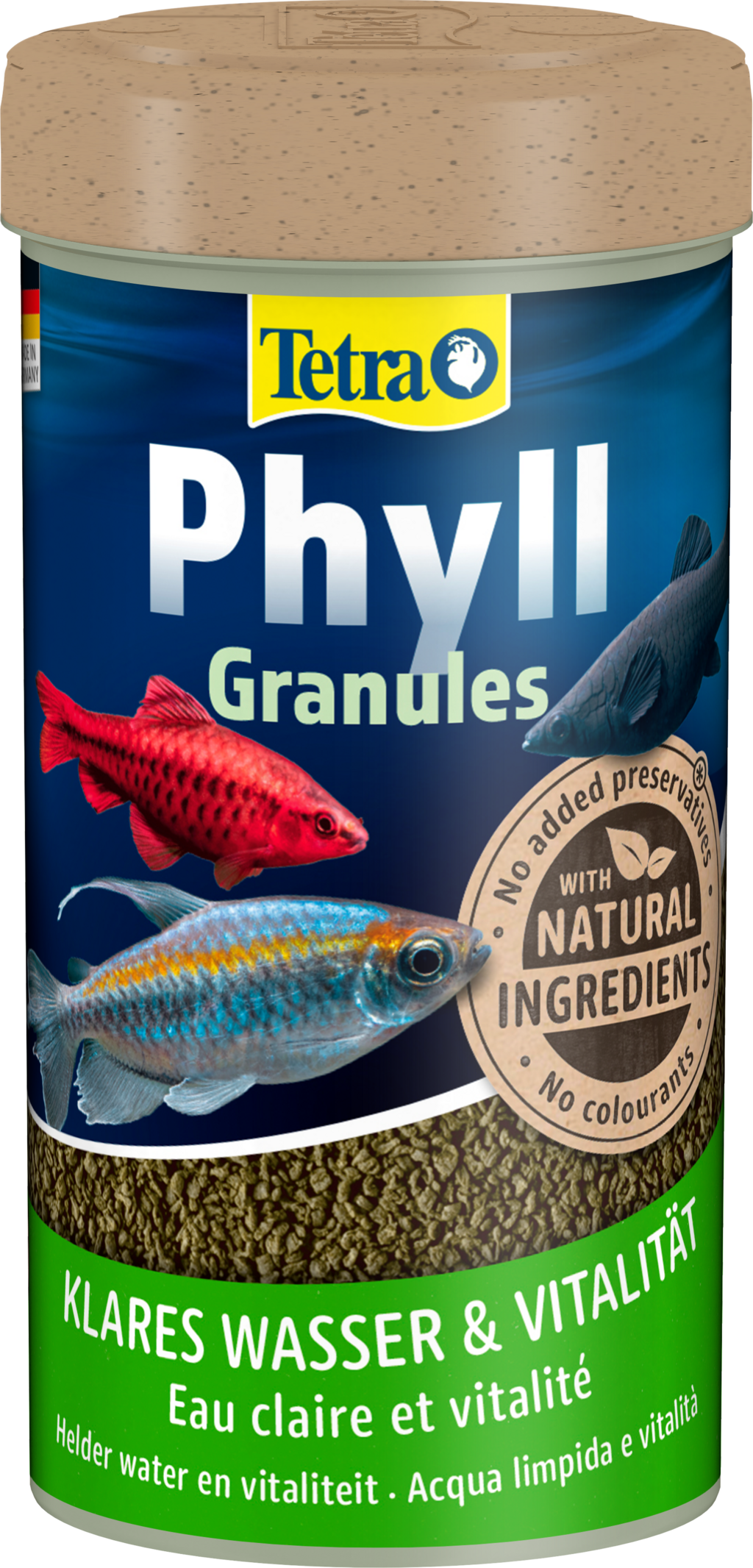 Avec TetraPhyll Granules, Tetra a créé un aliment de haute qualité pour offrir une alimentation complète et parfaitement adaptée aux besoins des poissons d'ornement herbivores. Les granulés, qui coulent lentement, sont idéaux pour les poissons se nourrissant dans les couches d'eau intermédiaires.
