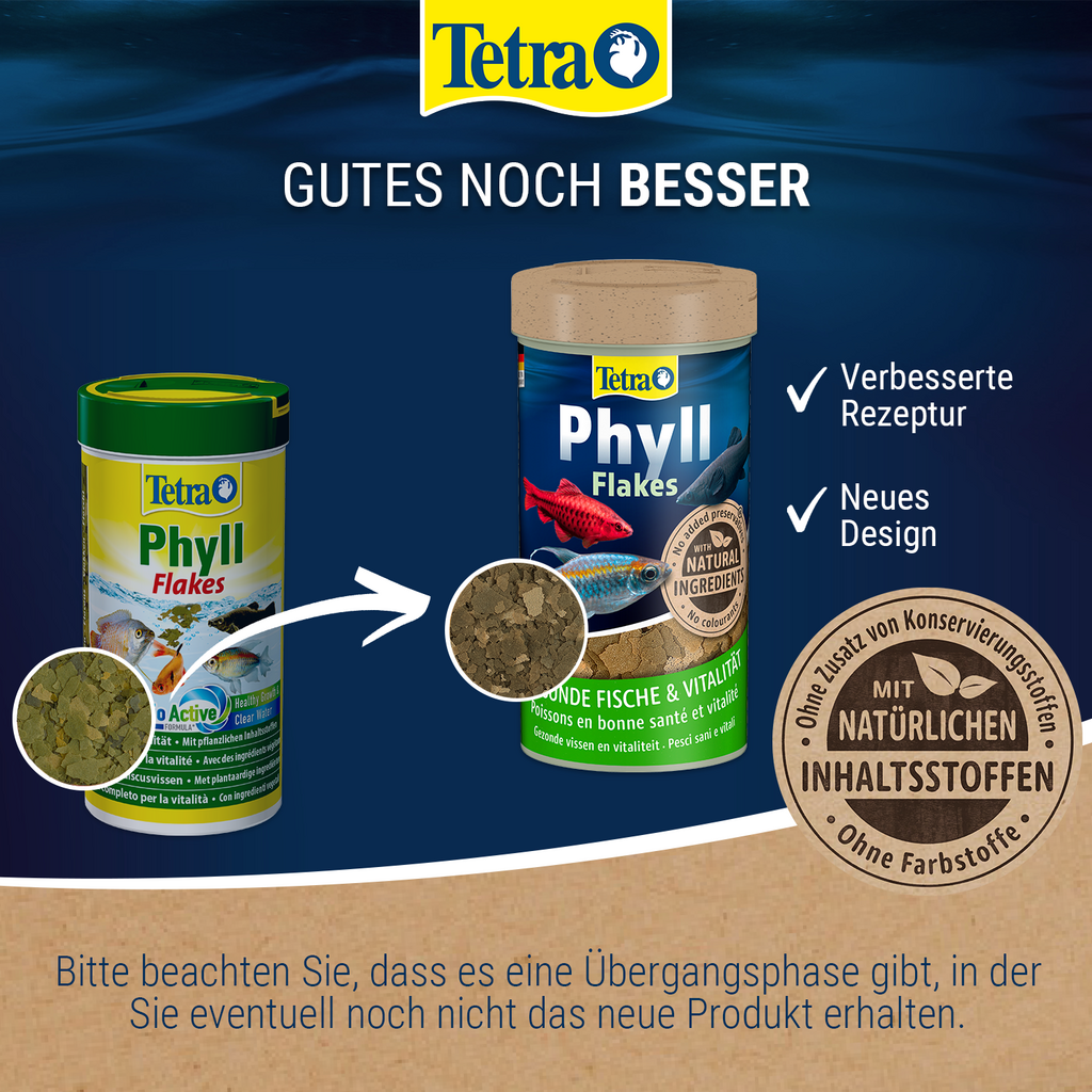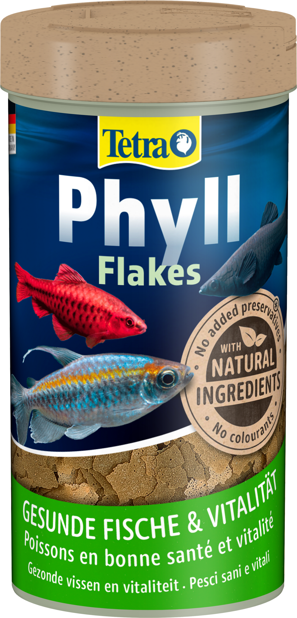 Tetra Phyll est un aliment en flocons de qualité supérieure, conçu pour tous les poissons d'ornement herbivores en aquariums d'eau douce.