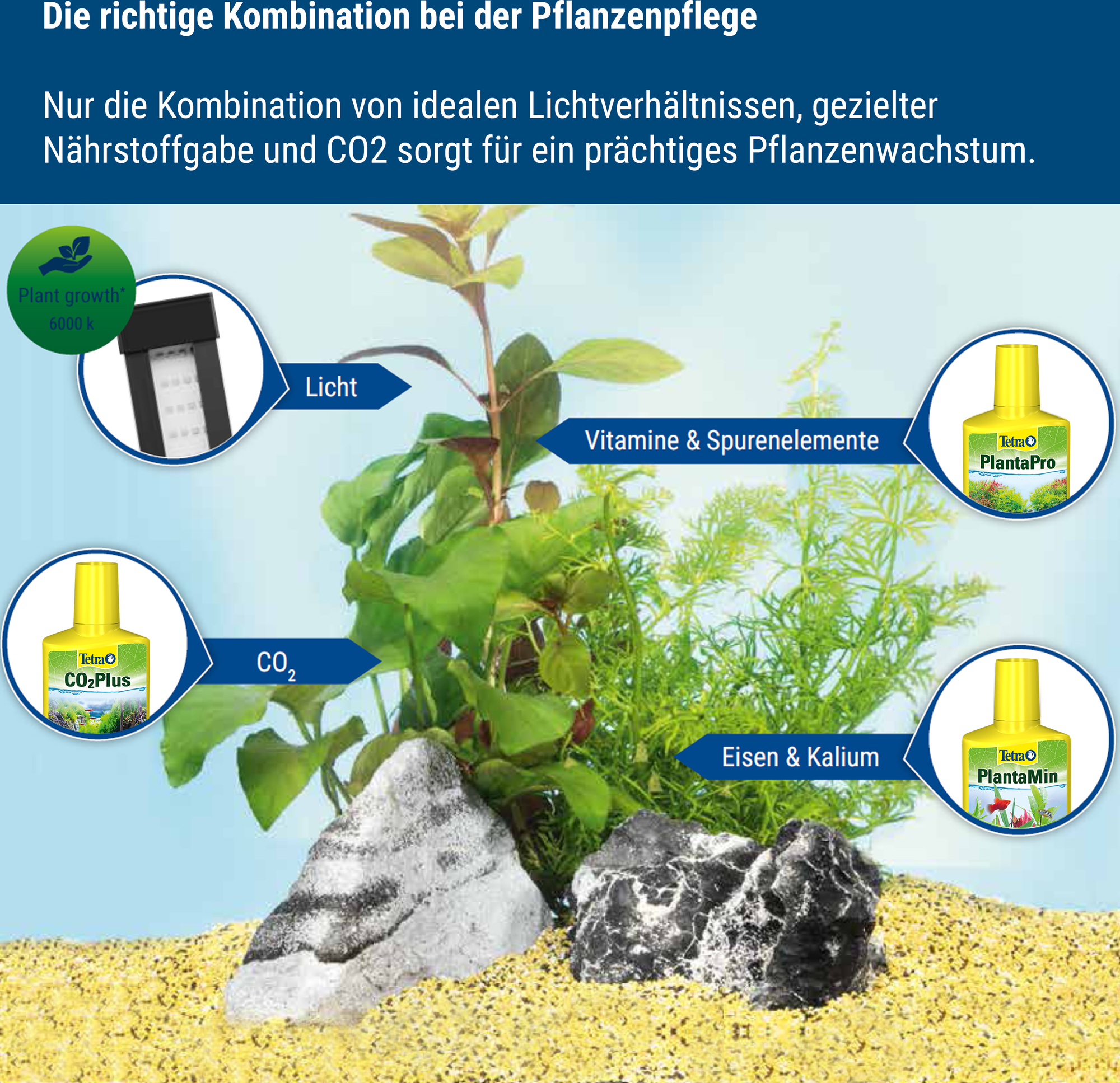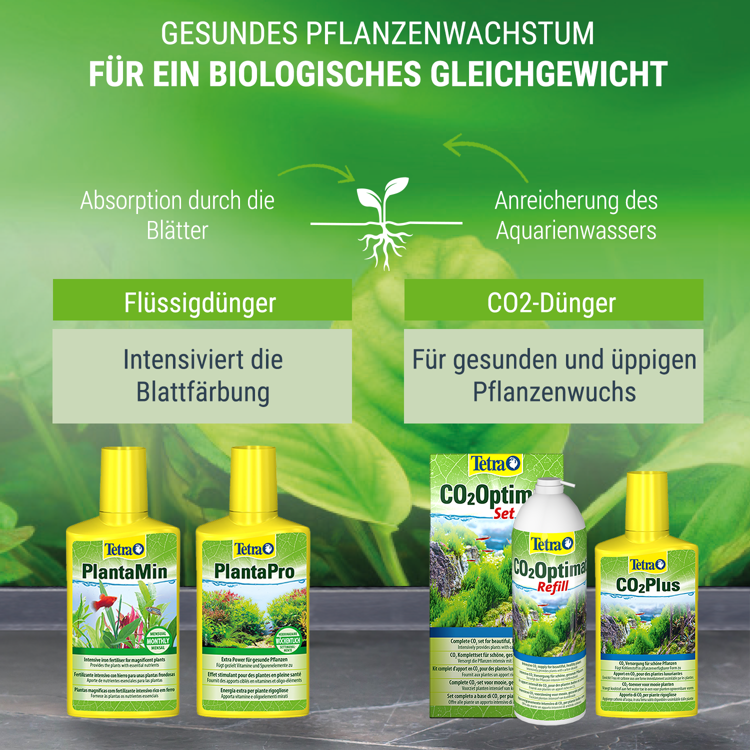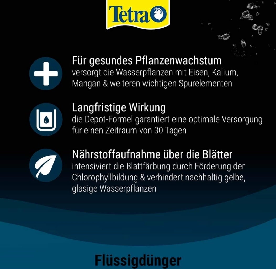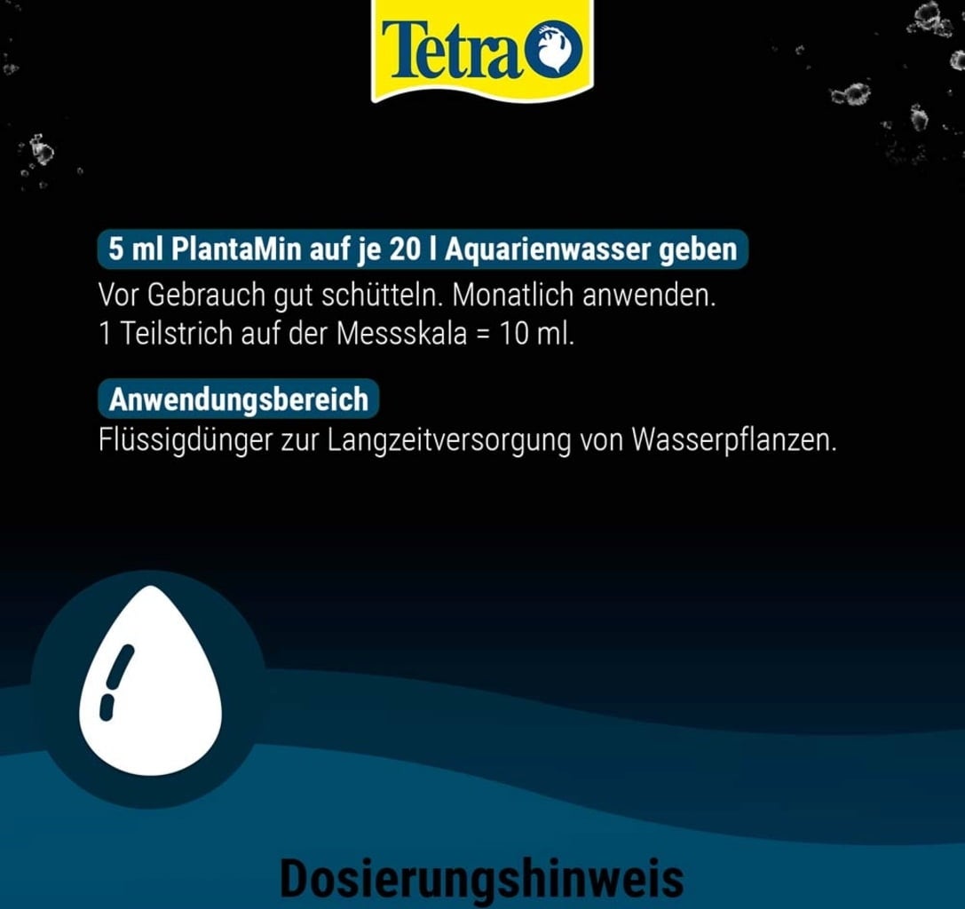Grâce à la formule spéciale de dépôt, les nutriments contenus dans Tetra PlantaMin sont disponibles pour les plantes sur une période de 4 semaines. Le fer, le potassium, le manganèse et d'autres oligo-éléments essentiels assurent une croissance luxuriante et saine des plantes. Des plantes fortes et saines sont la meilleure prophylaxie contre les algues. PlantaMin permet l'absorption des nutriments par les feuilles et ne pollue pas l'eau de l'aquarium car l'engrais est exempt de nitrate et de phosphate.