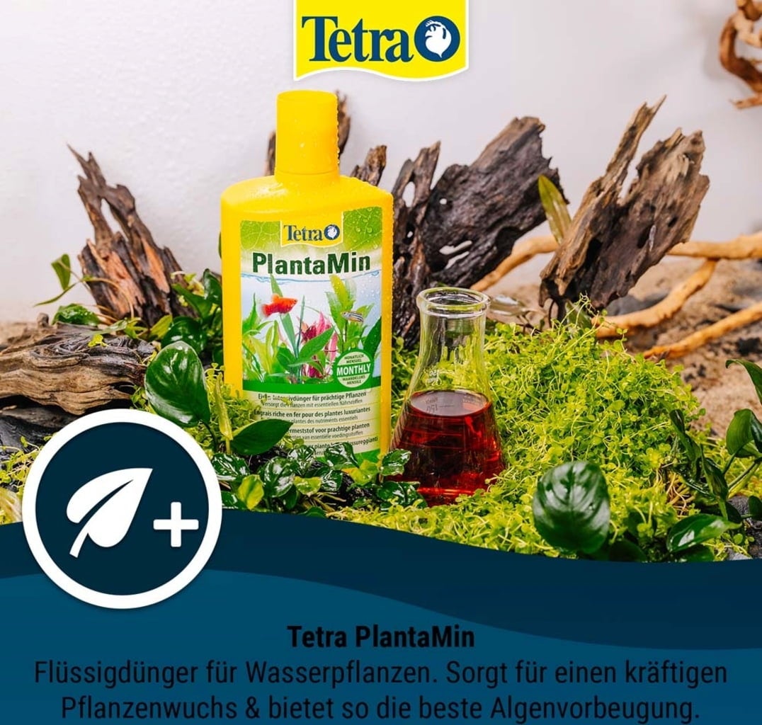 Tetra PlantaMin est un engrais pour feuilles avec une formule de dépôt qui fournit des nutriments sur une période de 4 semaines et ne convient que pour les aquariums d'eau douce et est disponible dans différents récipients.