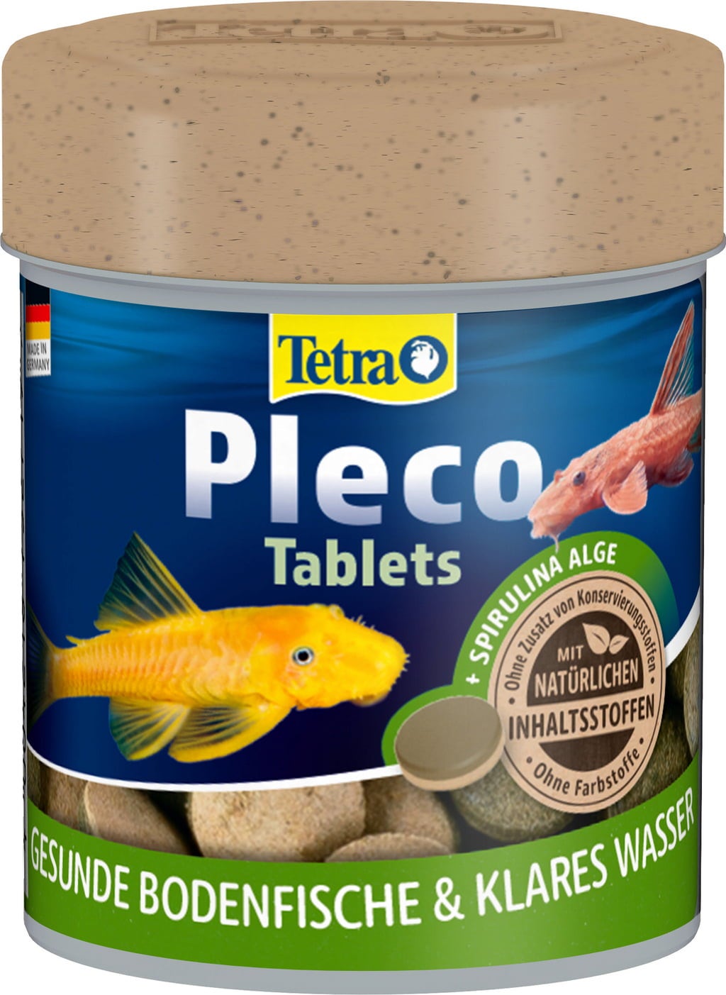 Les comprimés Tetra Pleco sont un aliment de base sous forme de comprimés pour tous les poissons de fond herbivores dans les aquariums d'eau douce et sont disponibles dans différents récipients.