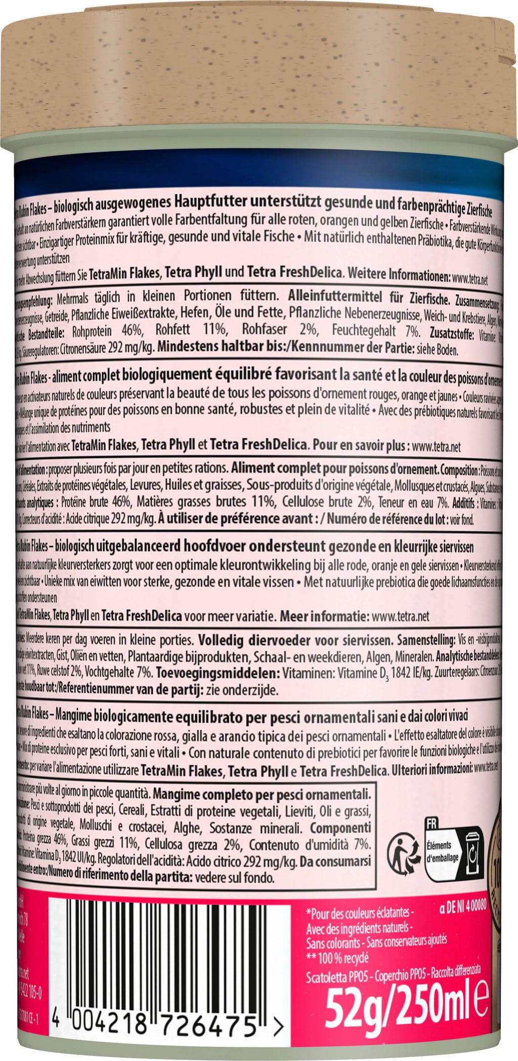 - Nourriture en flocons avec exhausteurs de couleur naturels pour des couleurs plus intenses