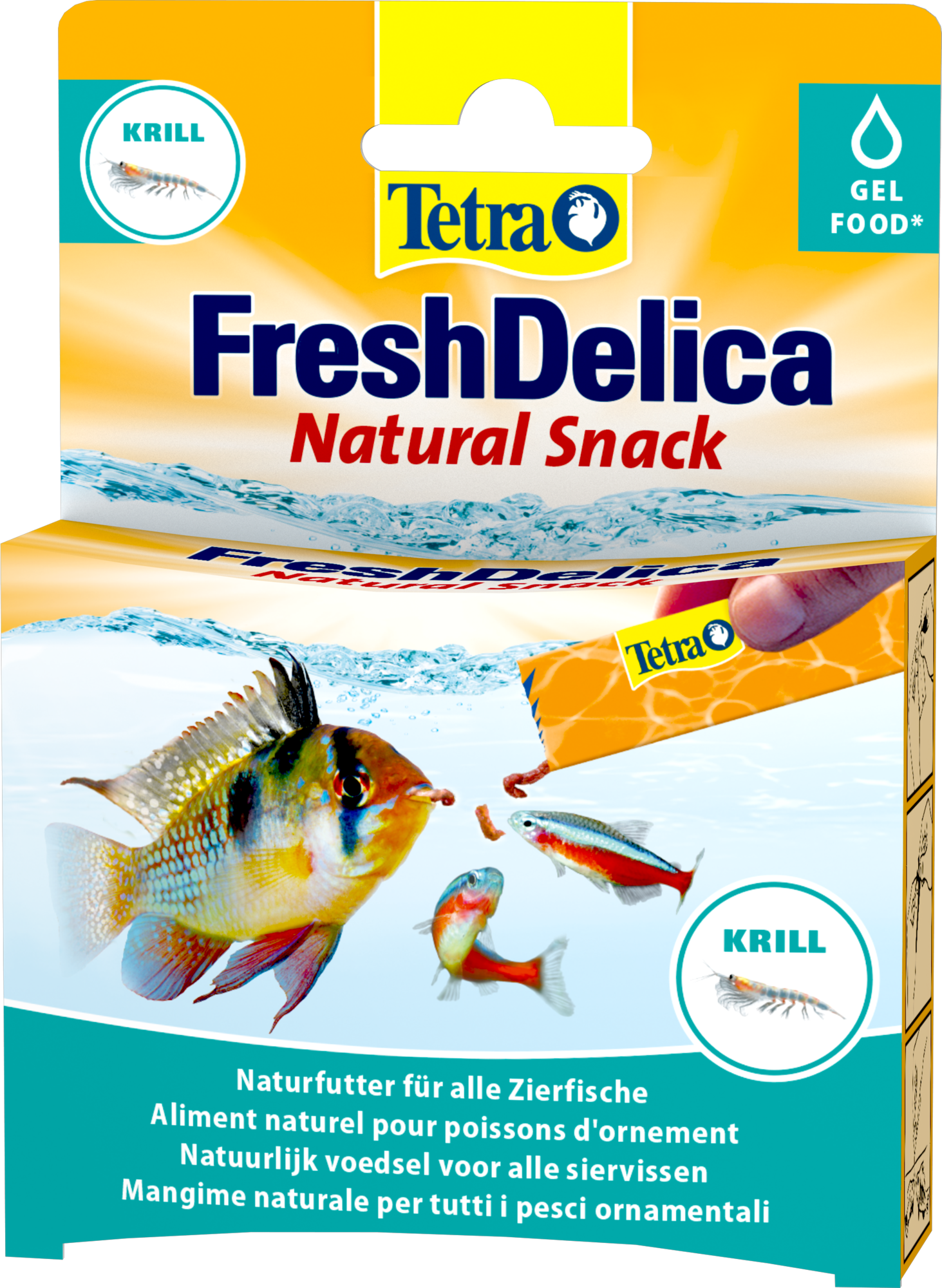 Tetra FreshDelica Krill est un aliment naturel innovant sous forme de gelée riche en nutriments pour tous les poissons d'ornement. La gelée assure une alimentation naturelle et variée ainsi qu'une interaction avec les poissons. FreshDelica est l'aliment complémentaire idéal pour l'aliment principal TetraMin. Un régal pour tous les poissons d'ornement, FreshDelica contient des animaux aquatiques naturels dans la gelée riche en vitamines et nutriments. Le goût frais et naturel assure une acceptation maximale auprès des poissons et est disponible en quatre saveurs différentes : larves de moustiques, crevettes, krills et daphnies Fresh Delica contient jusqu'à deux fois plus de nutriments que les aliments surgelés !