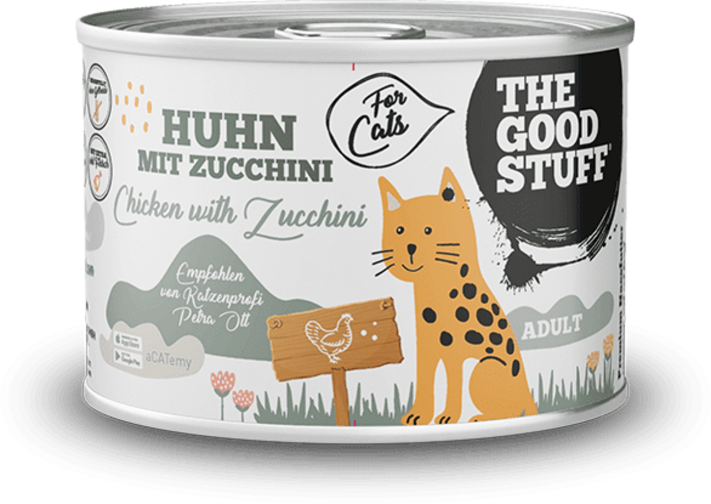 The Goodstuff enchante désormais également le palais gourmand des chats avec sa nourriture humide premium de haute qualité. Cette recette particulièrement simple combine de la viande de muscle de haute qualité et des abats riches en protéines avec des nutriments essentiels spécialement sélectionnés pour les besoins du chat. Sans conservateurs, colorants ou arômes artificiels, les morceaux de viande juteux et de courgettes sont conservés dans leur propre bouillon de poulet. Naturellement bon, sans céréales.