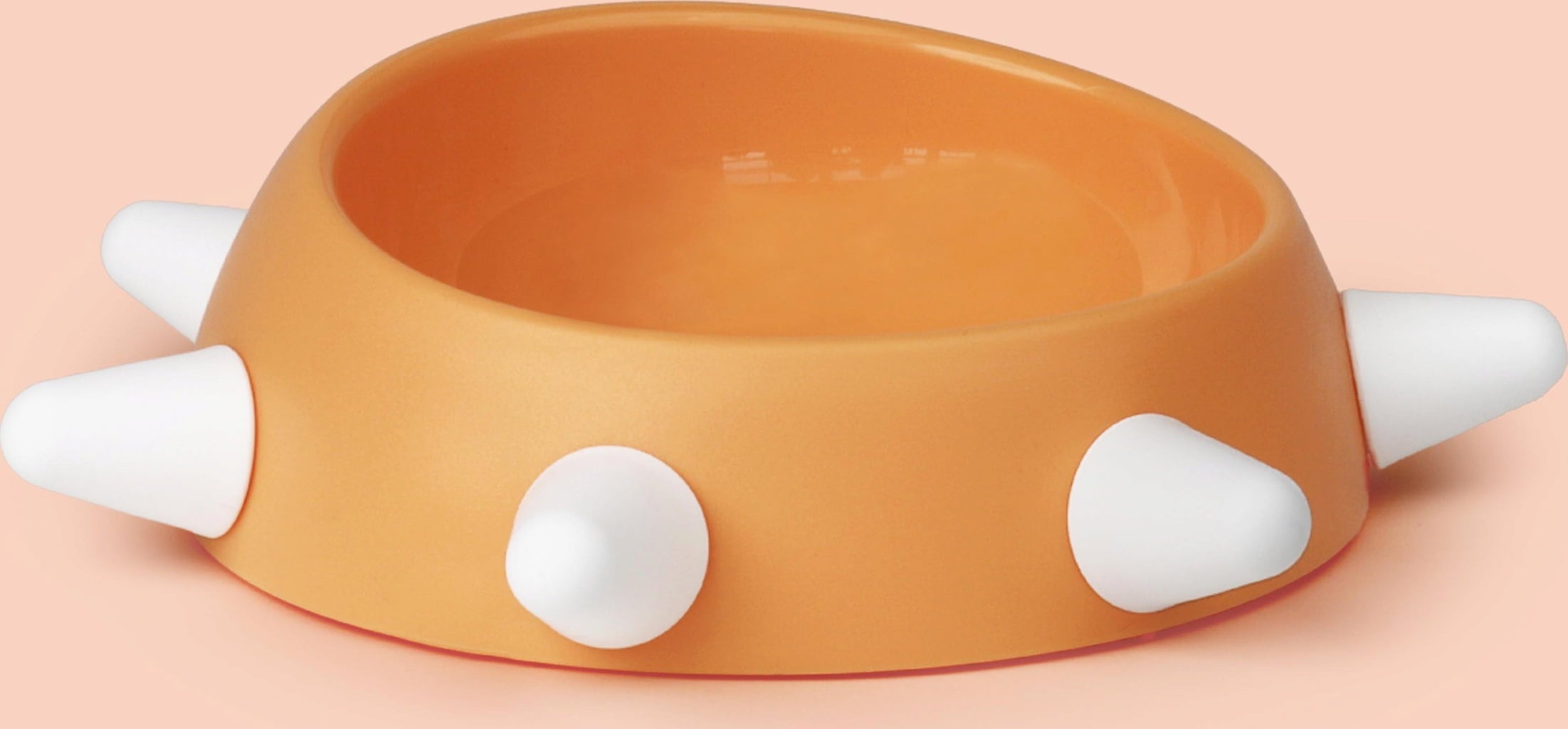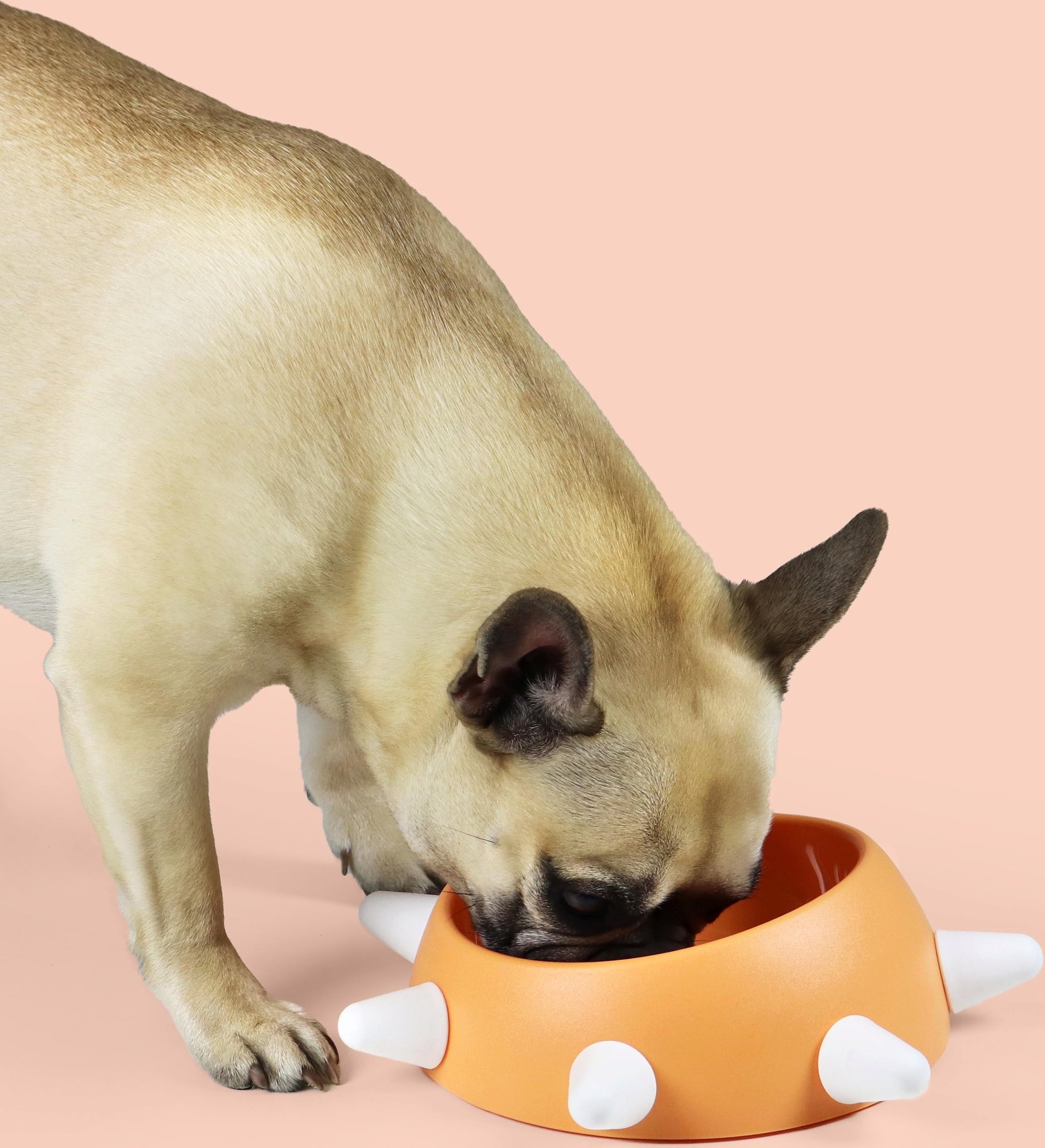 Ce bol amusant ressemble à un collier de chien. Son design a également une utilisation pratique. Tout d'abord, la forme inclinée facilite l'alimentation des chiens brachycéphales. De plus, le bol tient mieux dans la main grâce aux rivets en plastique.