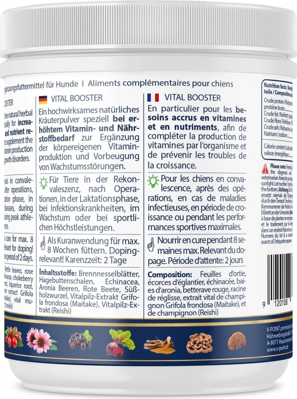 avis en français à propos du produit V-POINT VITAL Booster - Poudre Végétale pour Chiens