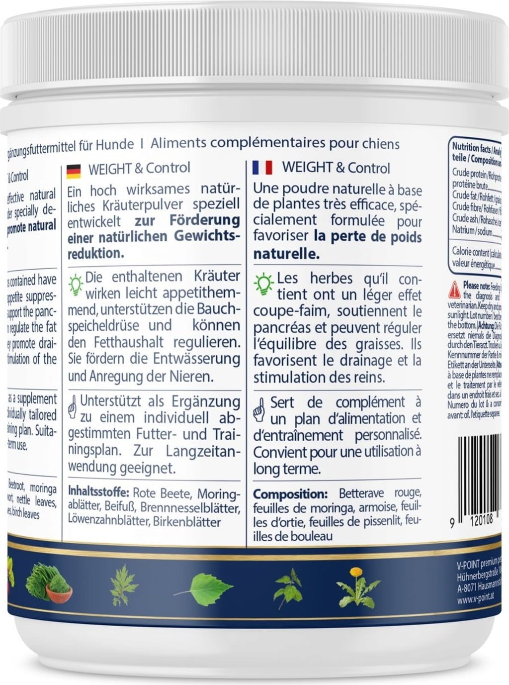 V-POINT Weight Control - Poudre Végétale pour Chiens, 250 g