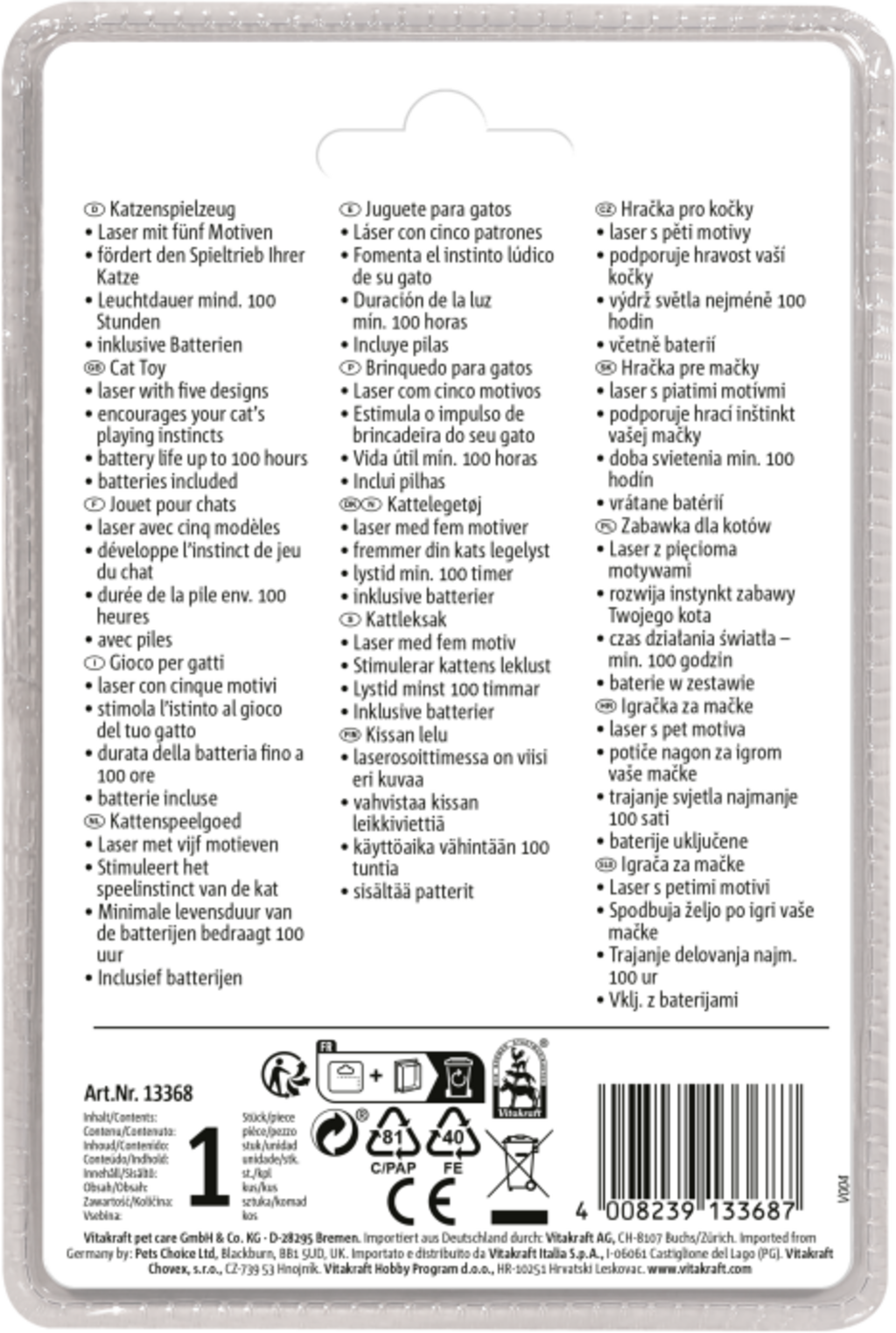 | Fabricant: | Vitakraft pet care GmbH & Co. KG, Mahndorfer Heerstr. 9, 28307, Bremen, Allemagne, www.vitakraft.com/de/de |