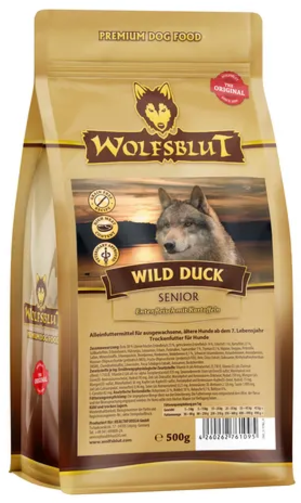 avis en français à propos du produit WOLFSBLUT Wild Duck Senior Canard & Pommes de Terre - Croquettes pour Chien