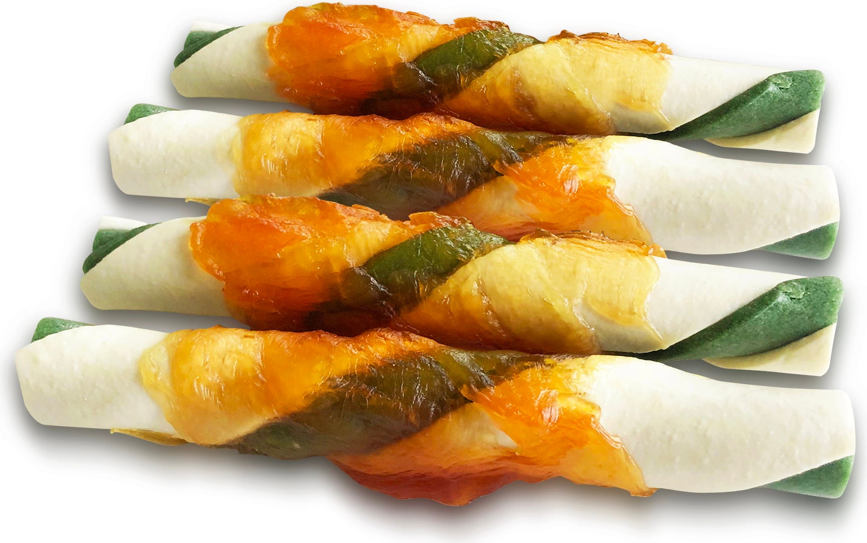 Ces os à mâcher son enroulés dans de tendres lamelles de blanc de poulet. Certainement l'un des moments les plus attendus de la journée !