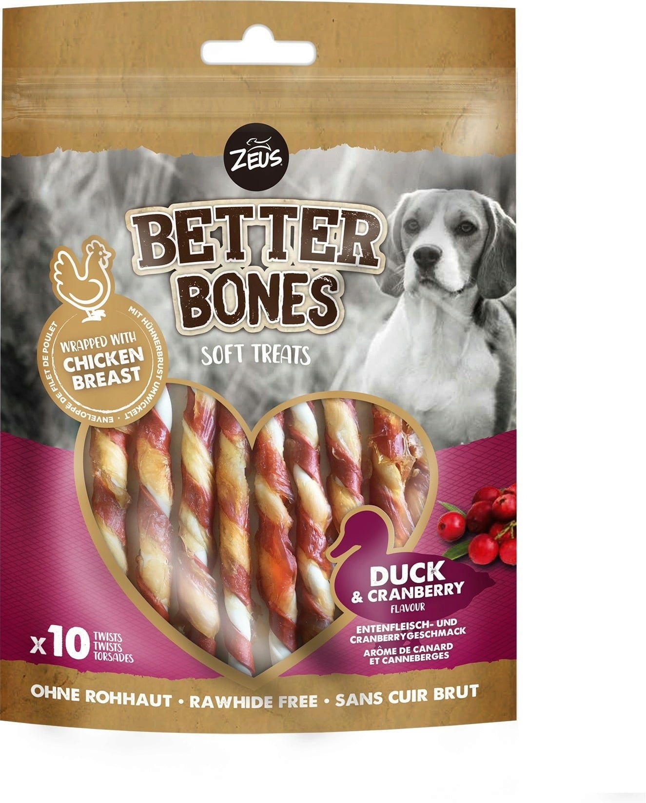 Zeus BetterBones Torsades Canard Canneberge - 10 cm, Canard et cranberry (10 pièces)
