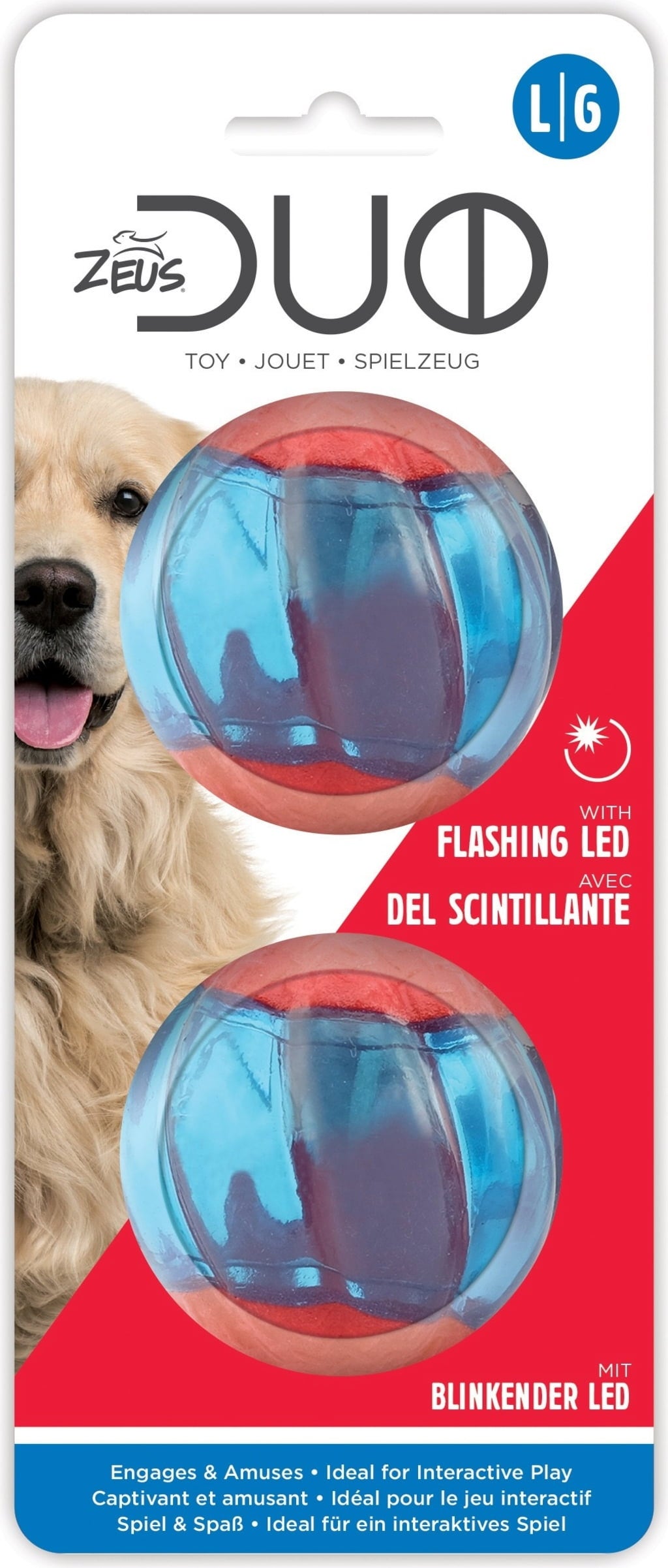 Les jouets qui clignotent ont tendance à captiver les animaux et les stimule à jouer ! La balle Duo LED de Zeus est un jouet interactif qui se met à briller de différentes couleurs lorsqu'il détecte un choc. Le nouveau jouet préféré de votre animal, de jour comme de nuit !