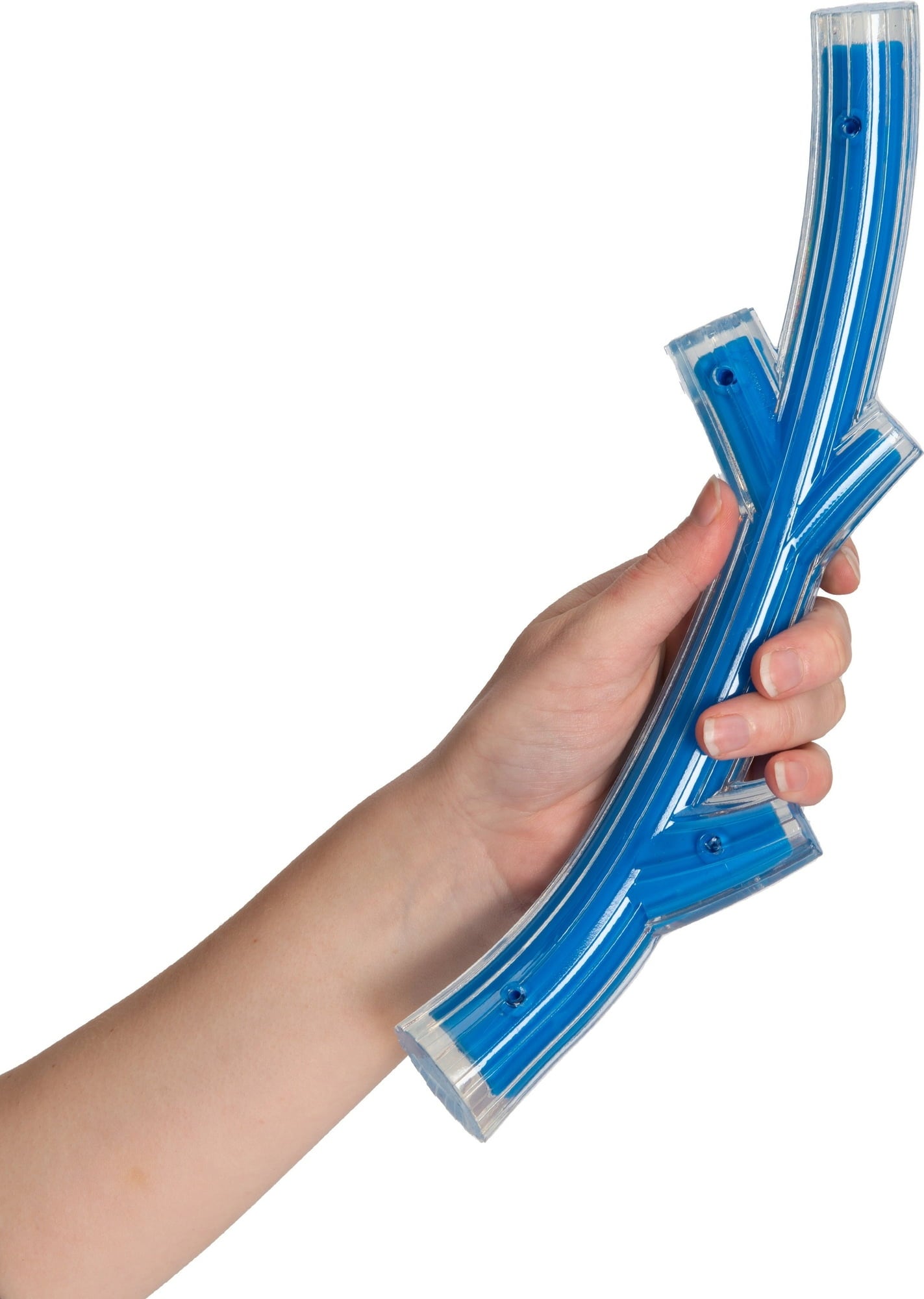 Le jouet est entièrement recouvert de caoutchouc thermoplastique (TPR), qui favorise la santé bucco-dentaire de l'animal à la mastication. Sa forme le rend très pratique à prendre en main et en bouche, ainsi qu'à lancer.