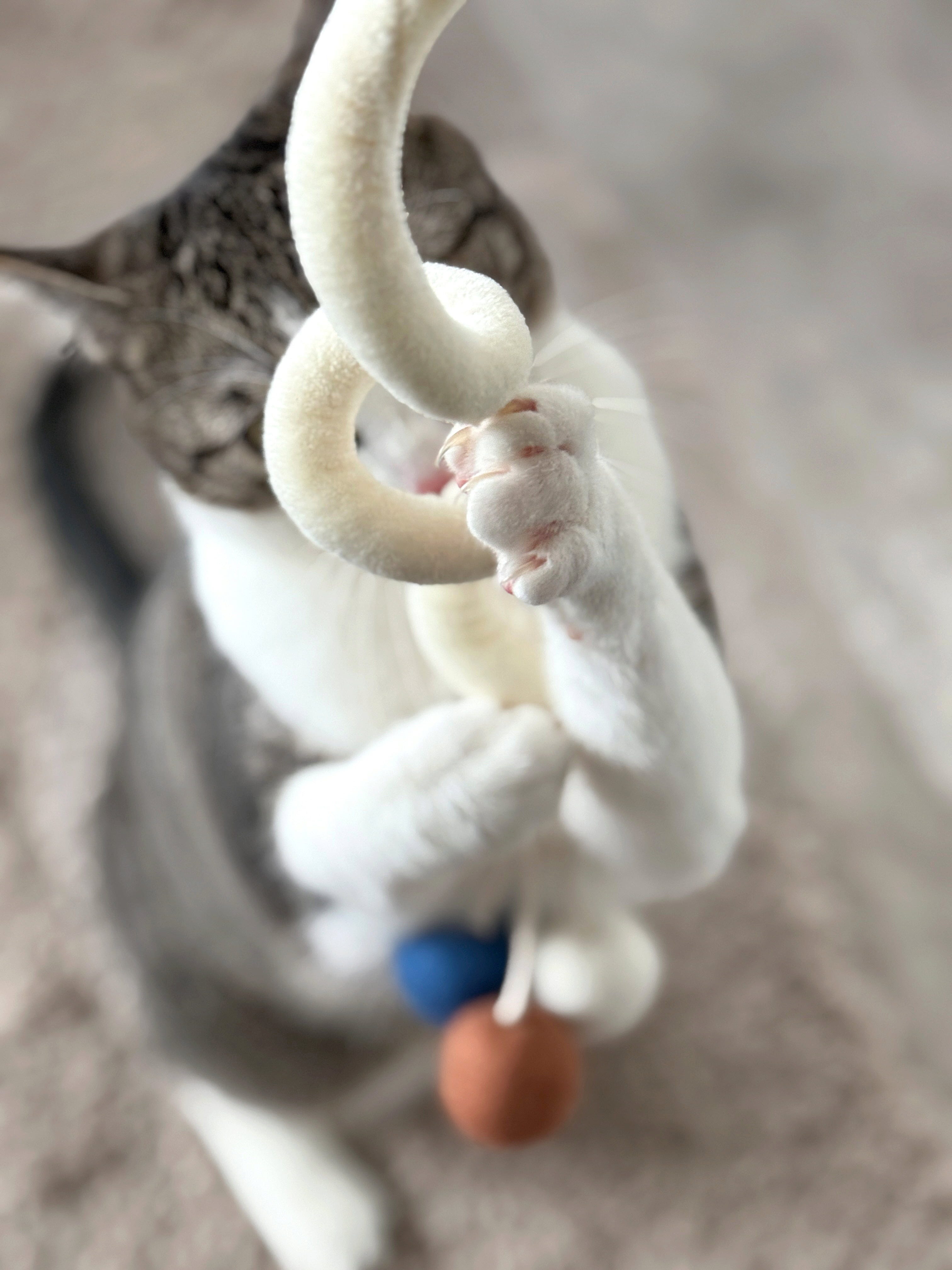 - Divertimento extra grazie ai loop elastici e alle 3 palline di feltro saldamente cucite