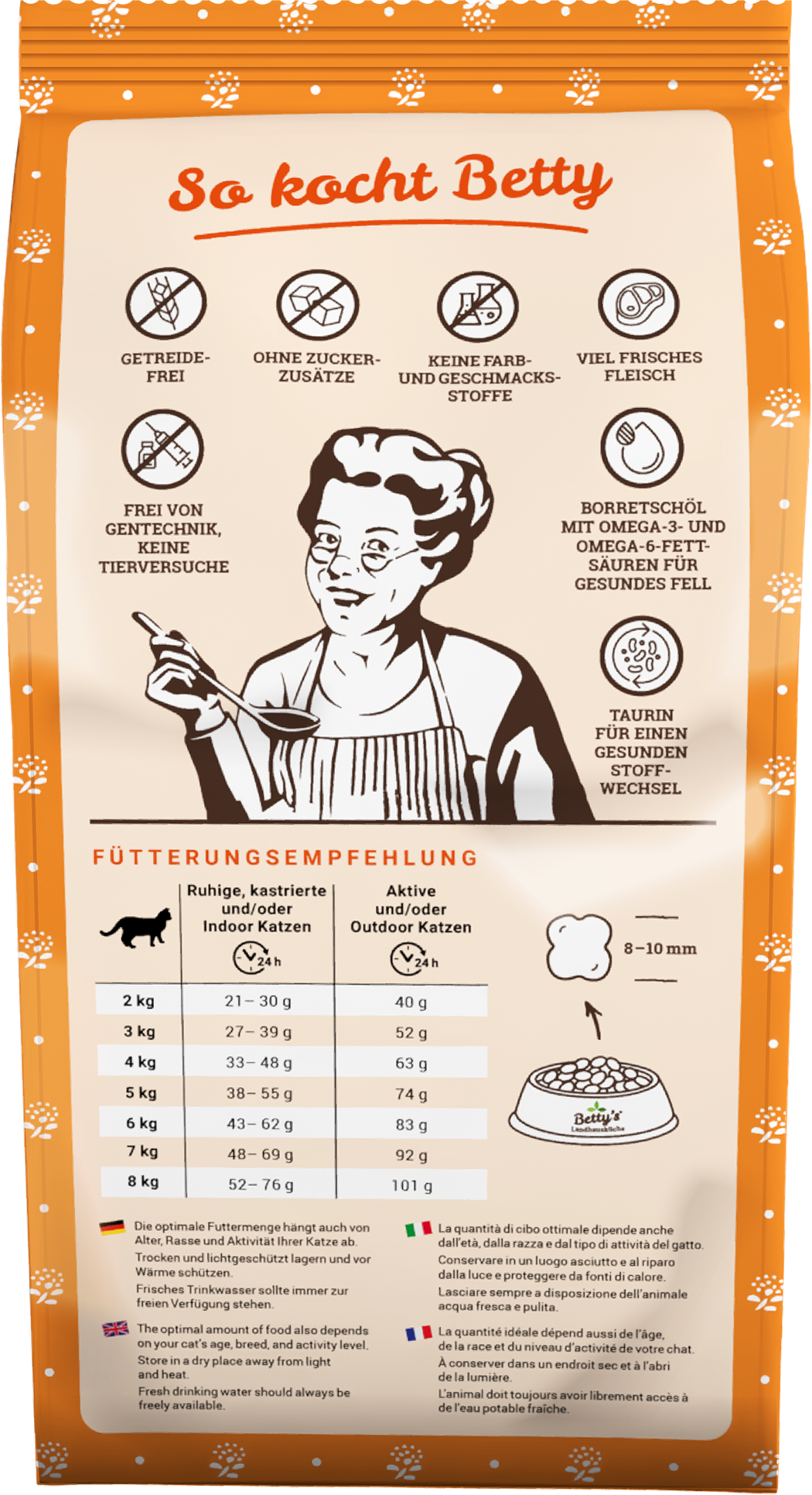 | Produttore: | Soultec Petcare GmbH, Edisonstr. 11, 84453, Mühldorf a.Inn, Germania, www.bettys-landhauskueche.de |
