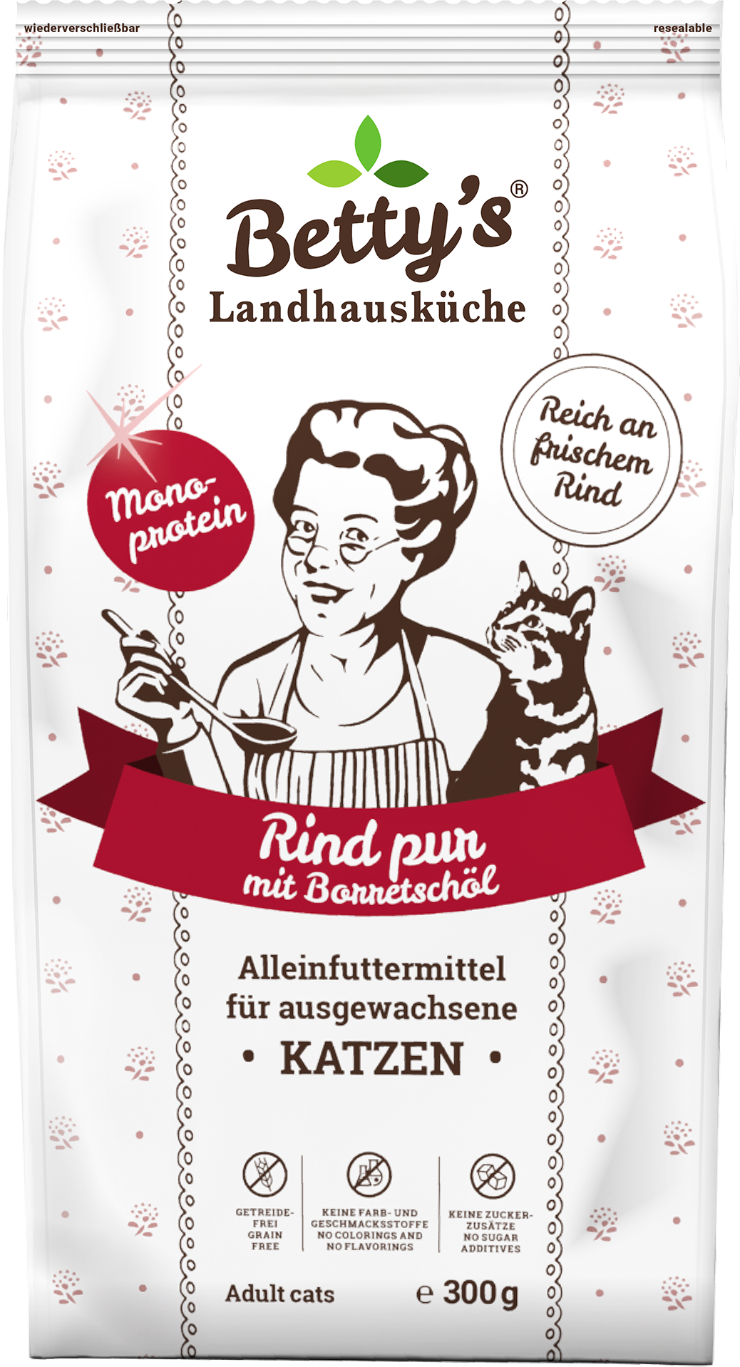 Betty's Landhausküche Cibo Secco per Gatti - Manzo Puro, 300 g