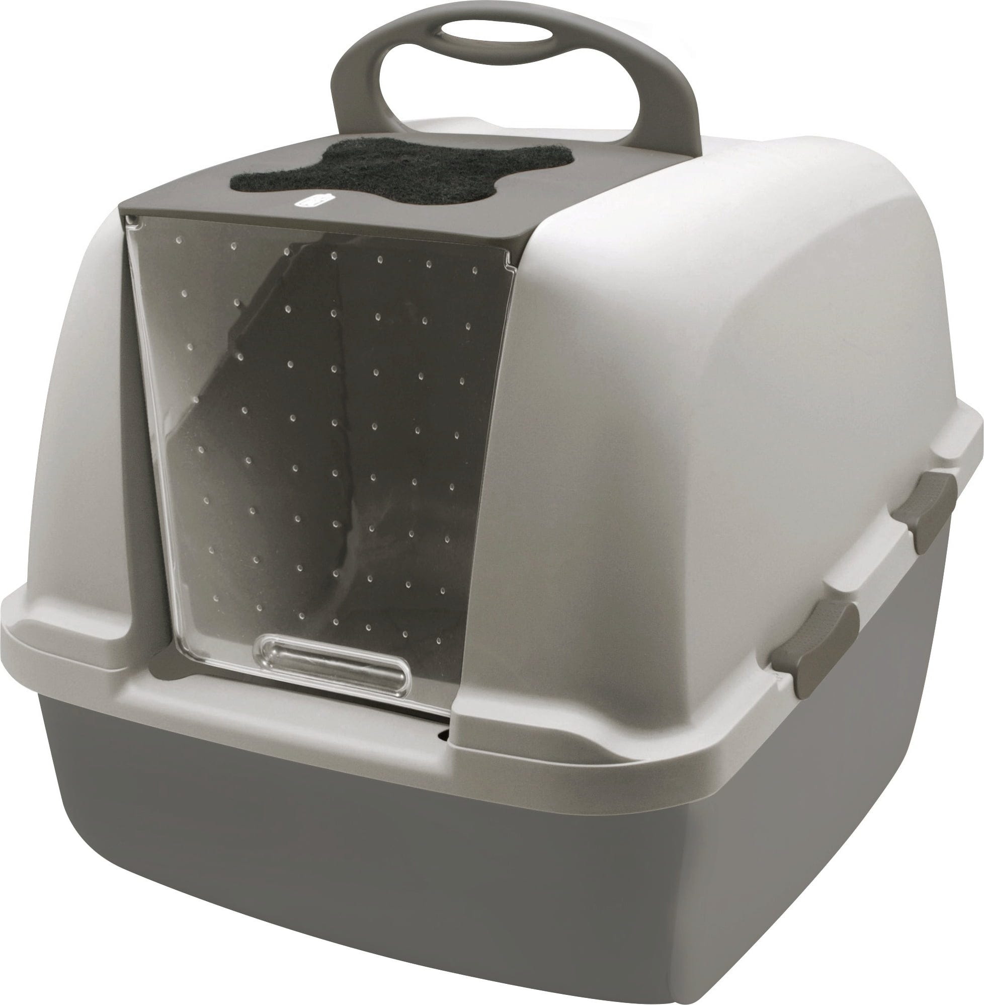 Le cassette igieniche con coperchio sono ideali per animali di grossa taglia o per famiglie con più gatti: un ingresso extra-large facilita l'accesso ai gatti e la pulizia da parte dei proprietari. Naturalmente la porta è a prova di zampa. Un filtro a carbone integrato riduce gli odori, mentre l'alloggiamento è realizzato con materiali privi di BPA e facili da pulire. La maniglia facilita lo spostamento della cassetta igienica.