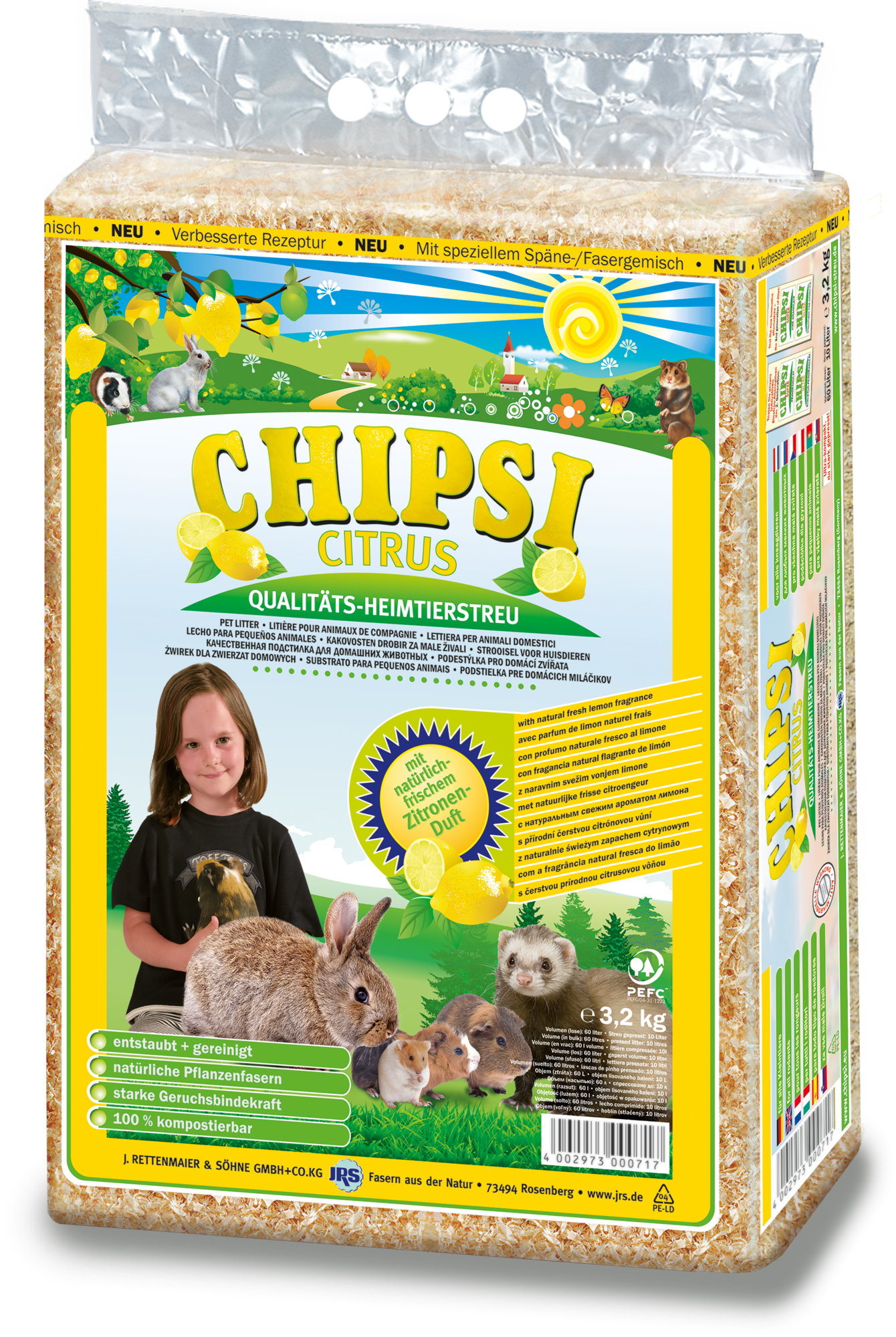 CITRUS di CHIPSI è una lettiera classica per gabbie di roditori con naturale profumo di agrumi. I trucioli di legno tenero, delicati sulle zampe e garantiti senza sostanze chimiche, rendono questo prodotto il preferito di animali e proprietari. Naturalmente, questa lettiera completamente vegetale è anche priva di polvere e assorbente, neutralizza gli odori e mantiene la casa del tuo piccolo animale piacevolmente asciutta e igienica.