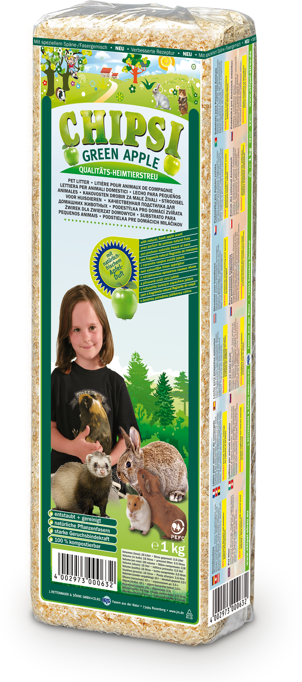 Questa lettiera ha un fresco profumo di mela verde e mantiene la gabbietta del tuo roditore piacevolmente asciutta: ideale per gabbie situate in zone abitate! PLUS GREEN APPLE è realizzata con trucioli di legno tenero puliti e spolverati. Il prodotto è altamente assorbente e, oltre al suo naturale profumo di mela, cattura efficacemente gli odori.