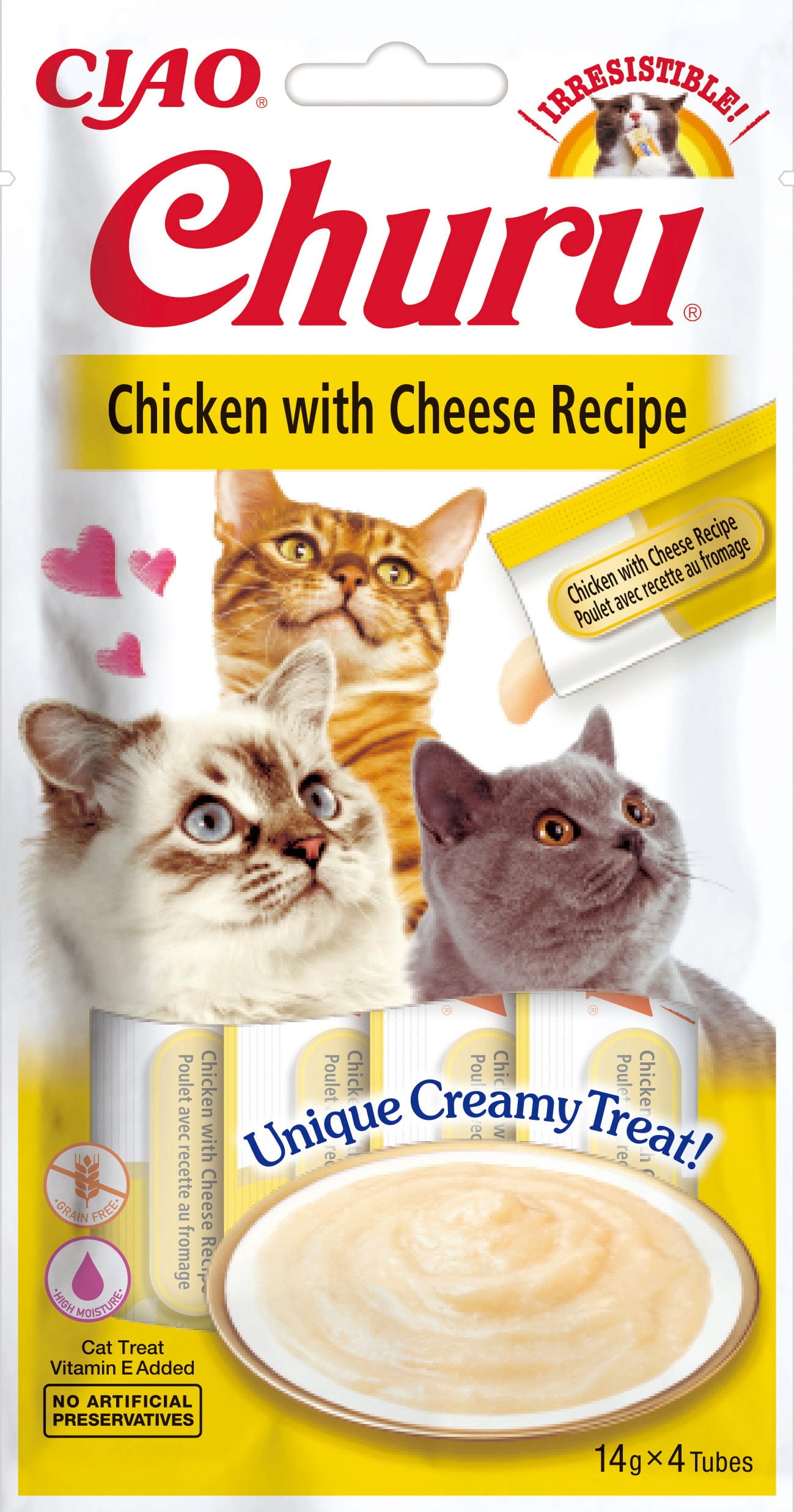 Churu Snack Cremoso al Pollo per Gatti 4x14 g, Con formaggio (56 g)