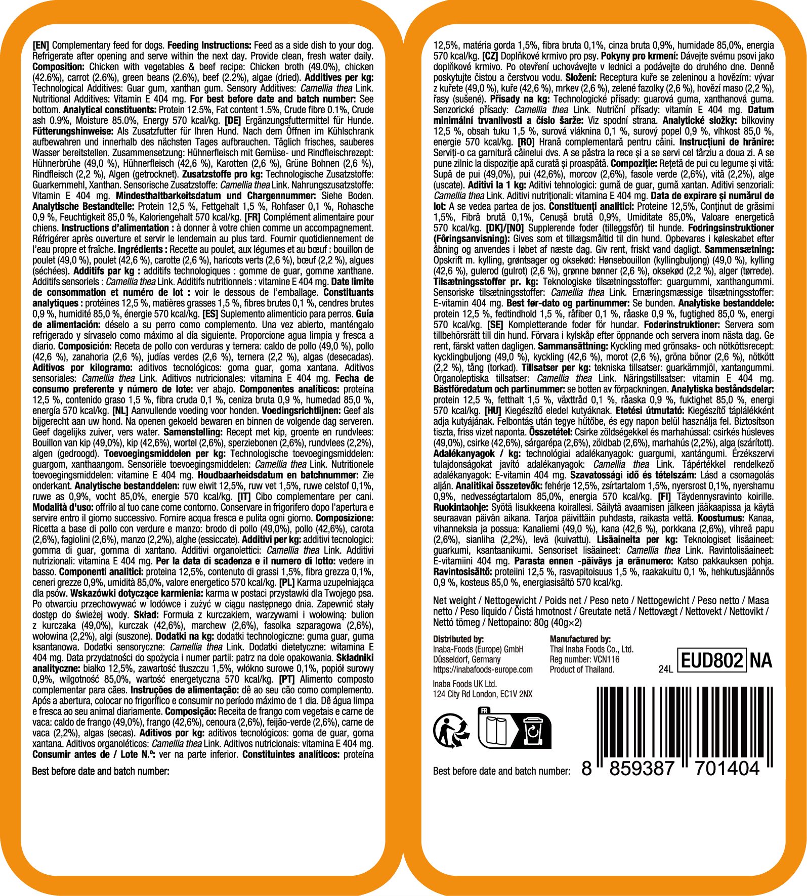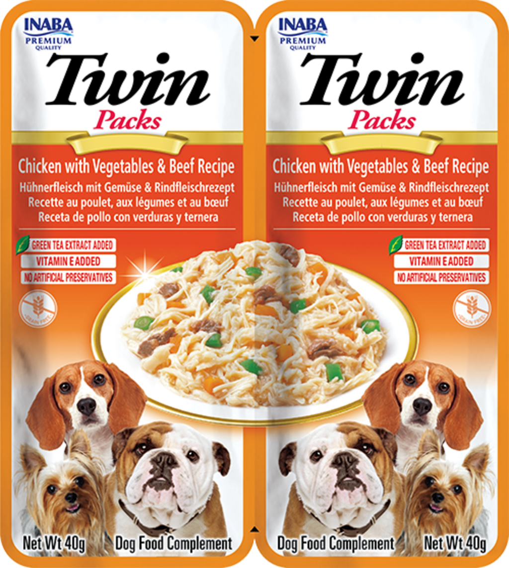 Churu Snack per Cani - Twin Packs 2 x 40 g, Pollo con verdure e manzo in brodo di pollo (80 g)
